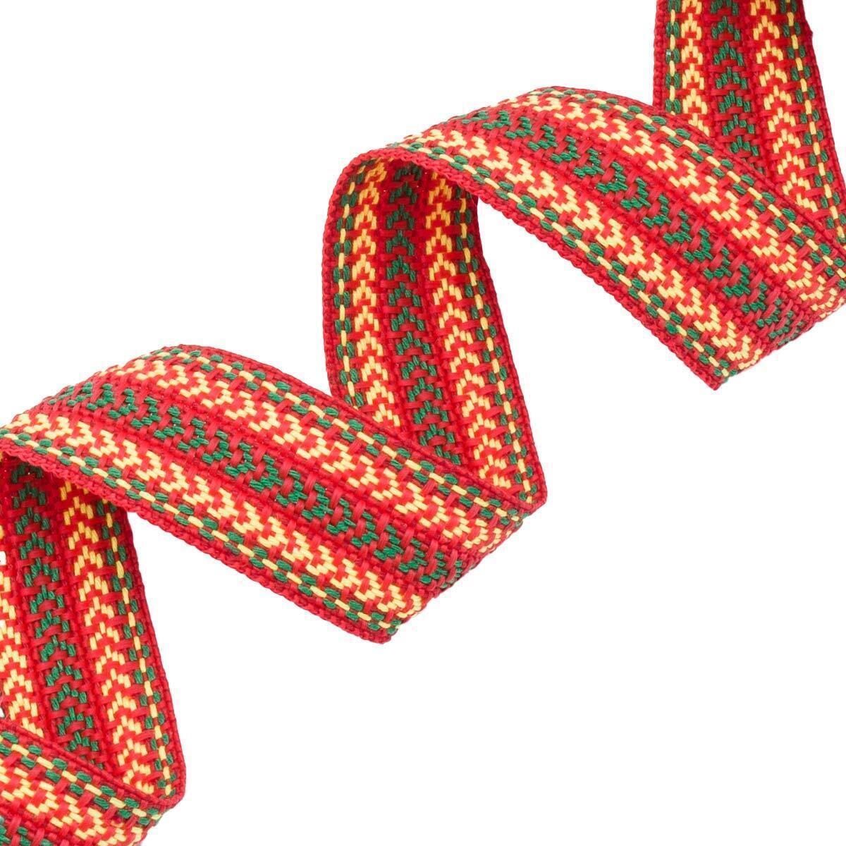Лента (тесьма) жаккардовая 30.0 мм / 25±1 метров, х/б рис. 9870, красный/желтый/зеленый, С3881Г17