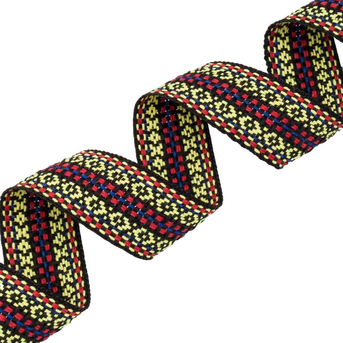 Лента (тесьма) жаккардовая 30.0 мм / 25±1 метров, х/б рис. 9871, черный/желтый/красный/синий, С3881Г17