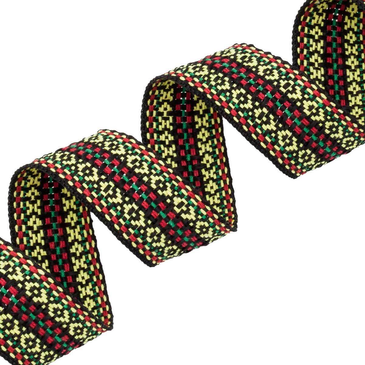 Лента (тесьма) жаккардовая 30.0 мм / 25±1 метров, х/б рис. 9871, черный/желтый/красный/зеленый, С3881Г17