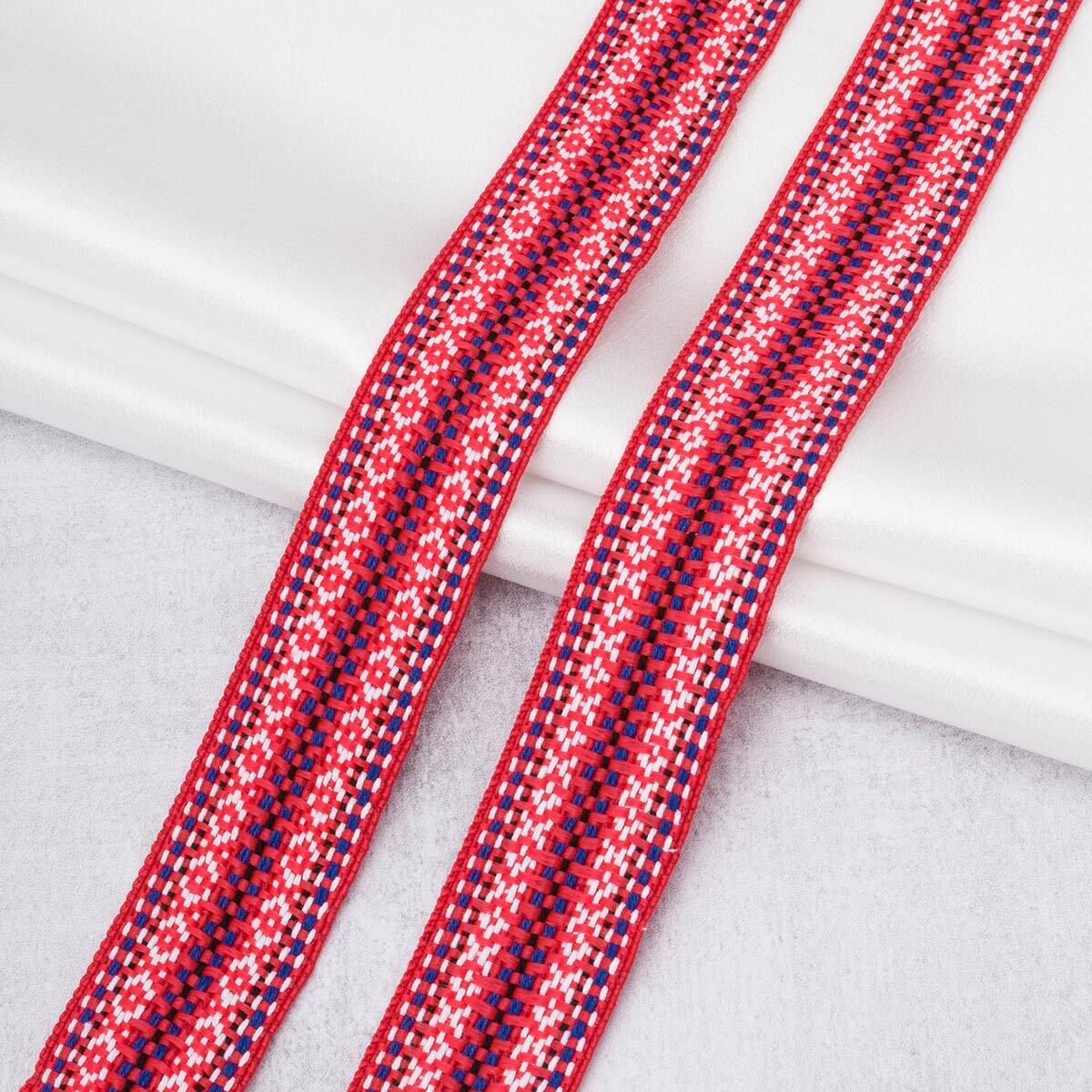 Лента (тесьма) жаккардовая 30.0 мм / 25 метров, х/б, рис.9871, красный/белый/синий/черный, С3881Г17