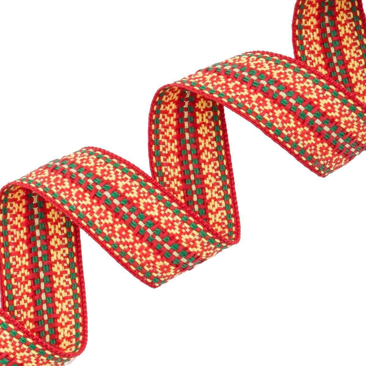 Лента (тесьма) жаккардовая 30.0 мм / 25±1 метров, х/б рис. 9871, красный/желтый/зеленый, С3881Г17