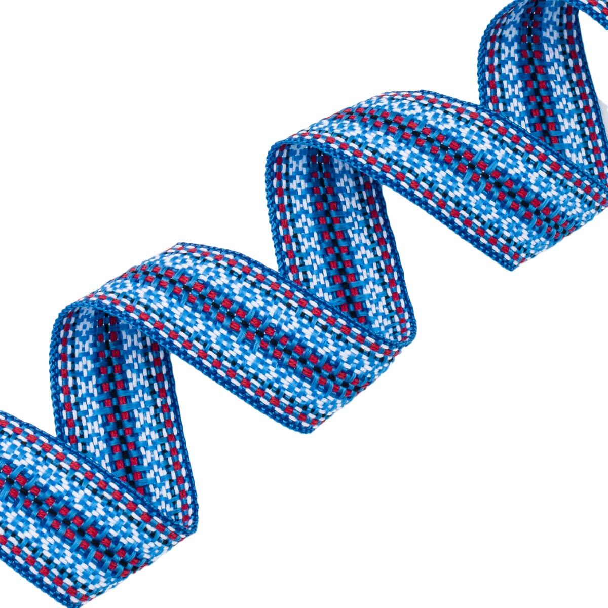 Лента (тесьма) жаккардовая 30.0 мм / 25±1 метров, х/б рис. 9871, синий/белый/красный/черный, С3881Г17