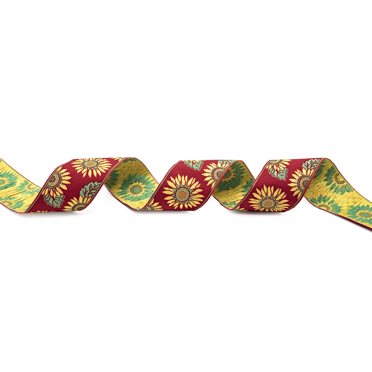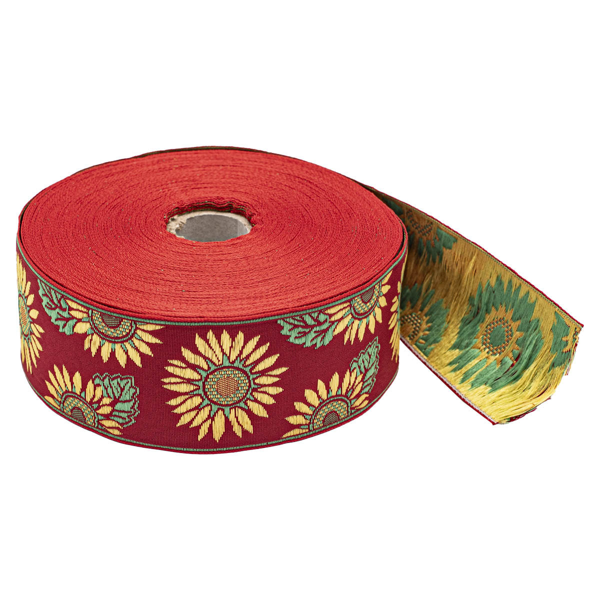 Лента (тесьма) жаккардовая 50.0 мм / 25±1 метров, рис. 8890 Подсолнухи, (1 красный) С3379Г17