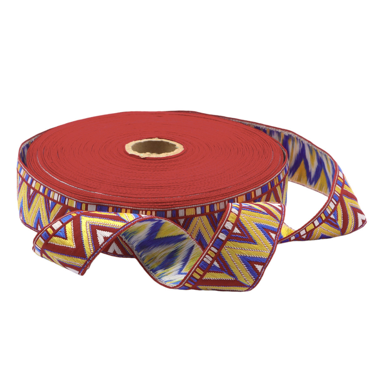 Лента (тесьма) жаккардовая 32.0 мм / 25±1 метров, рис. 8992, (красный/желтый/синий) С1853Г17