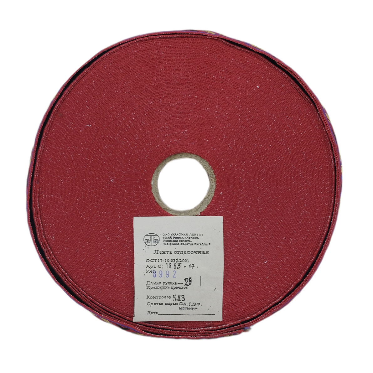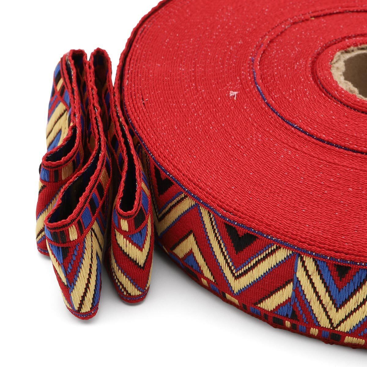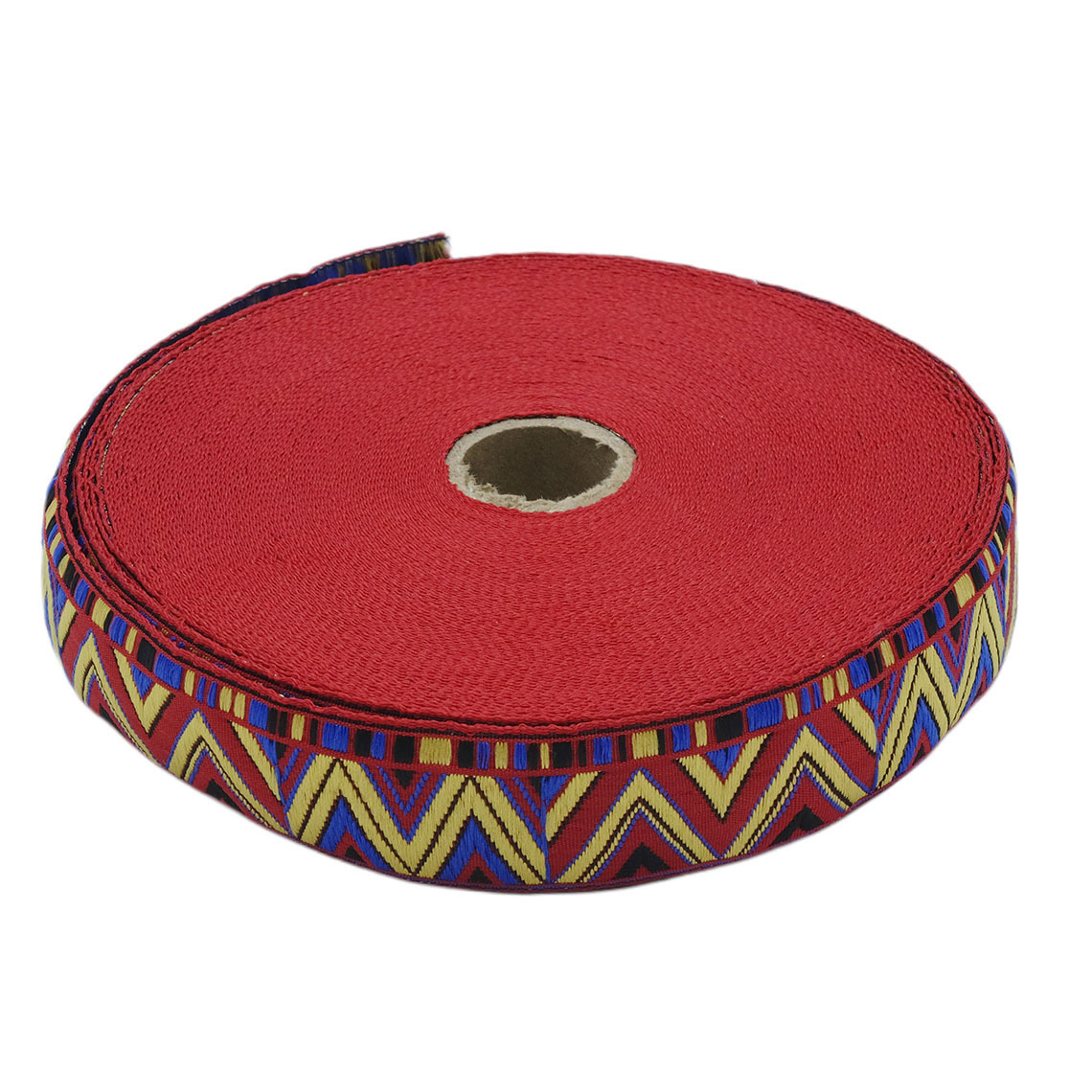 Лента (тесьма) жаккардовая 32.0 мм / 25±1 метров, рис. 8992 красный / желтый / синий / черный, С1853Г17
