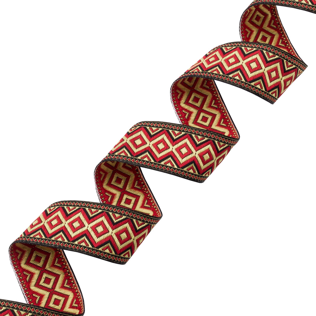 Лента (тесьма) жаккардовая 32.0 мм / 25±1 метров, рис. 9496, черный/красный/желтый, С1853Г17