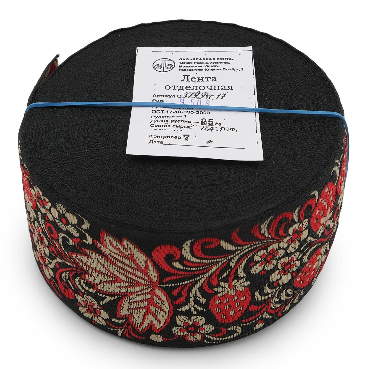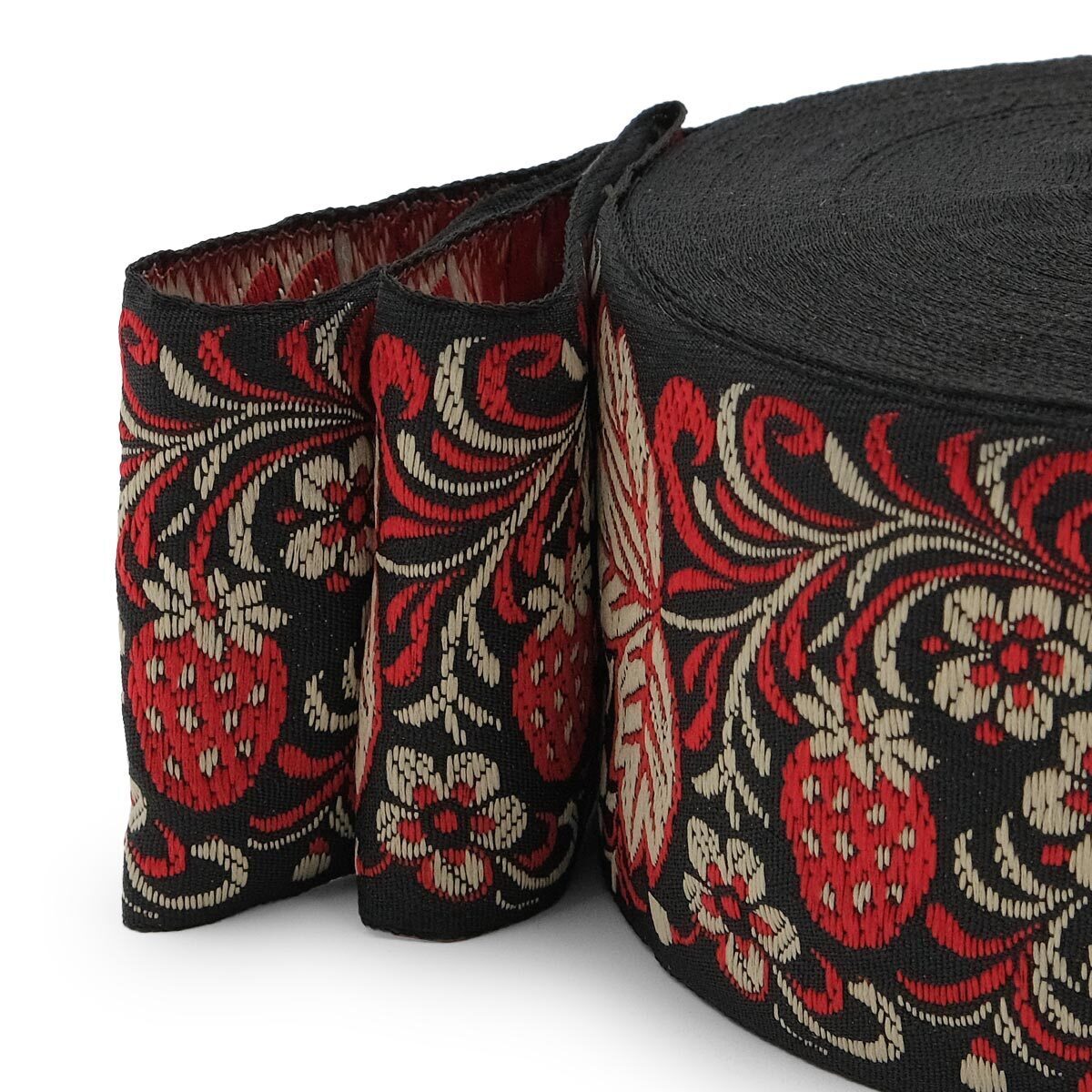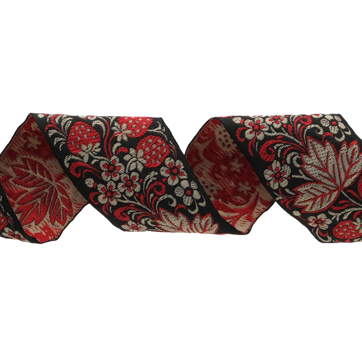 Лента (тесьма) жаккардовая 65.0 мм / 25±1 метров, рис. 9509 Клубничка, (черный) С3799Г17