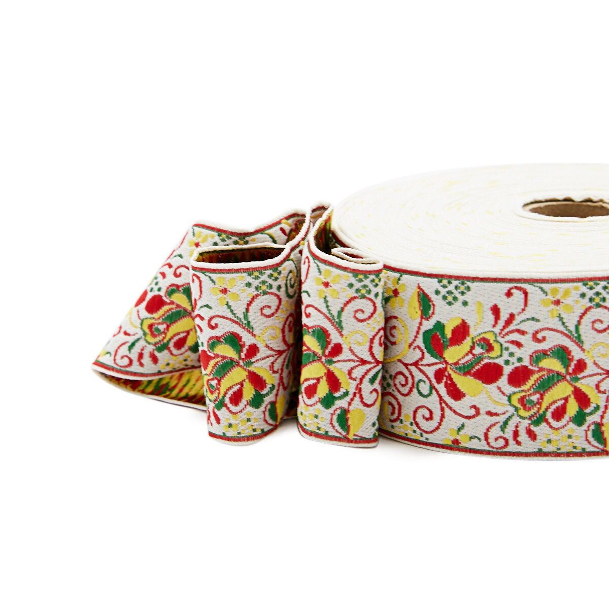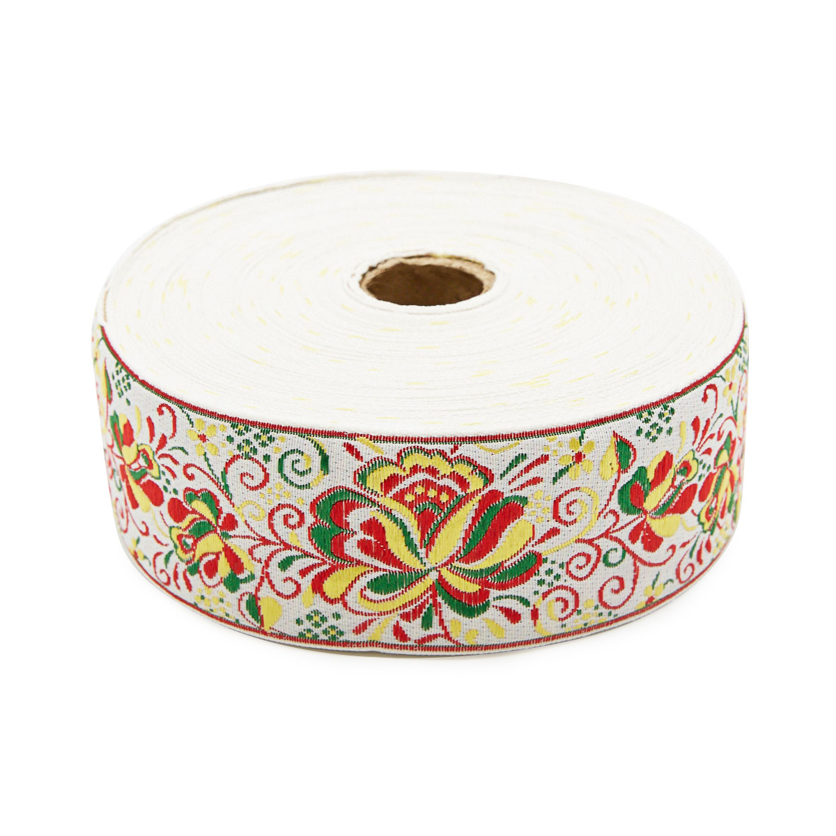 Лента (тесьма) жаккардовая 50.0 мм / 25±1 метров, рис. 9568 Гжель, (1 белый/желтый/красный/зеленый) С3379Г17