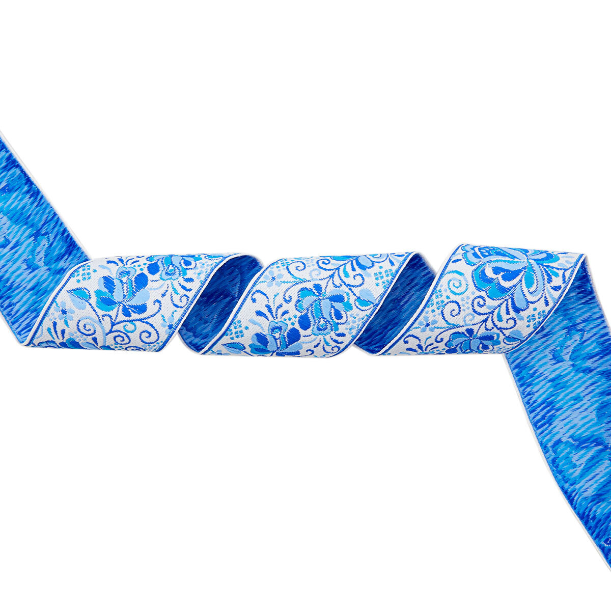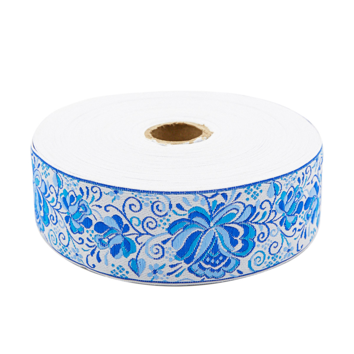 Лента (тесьма) жаккардовая 50.0 мм / 25±1 метров, рис. 9568 Гжель, (4 белый/синий/голубой) С3379Г17