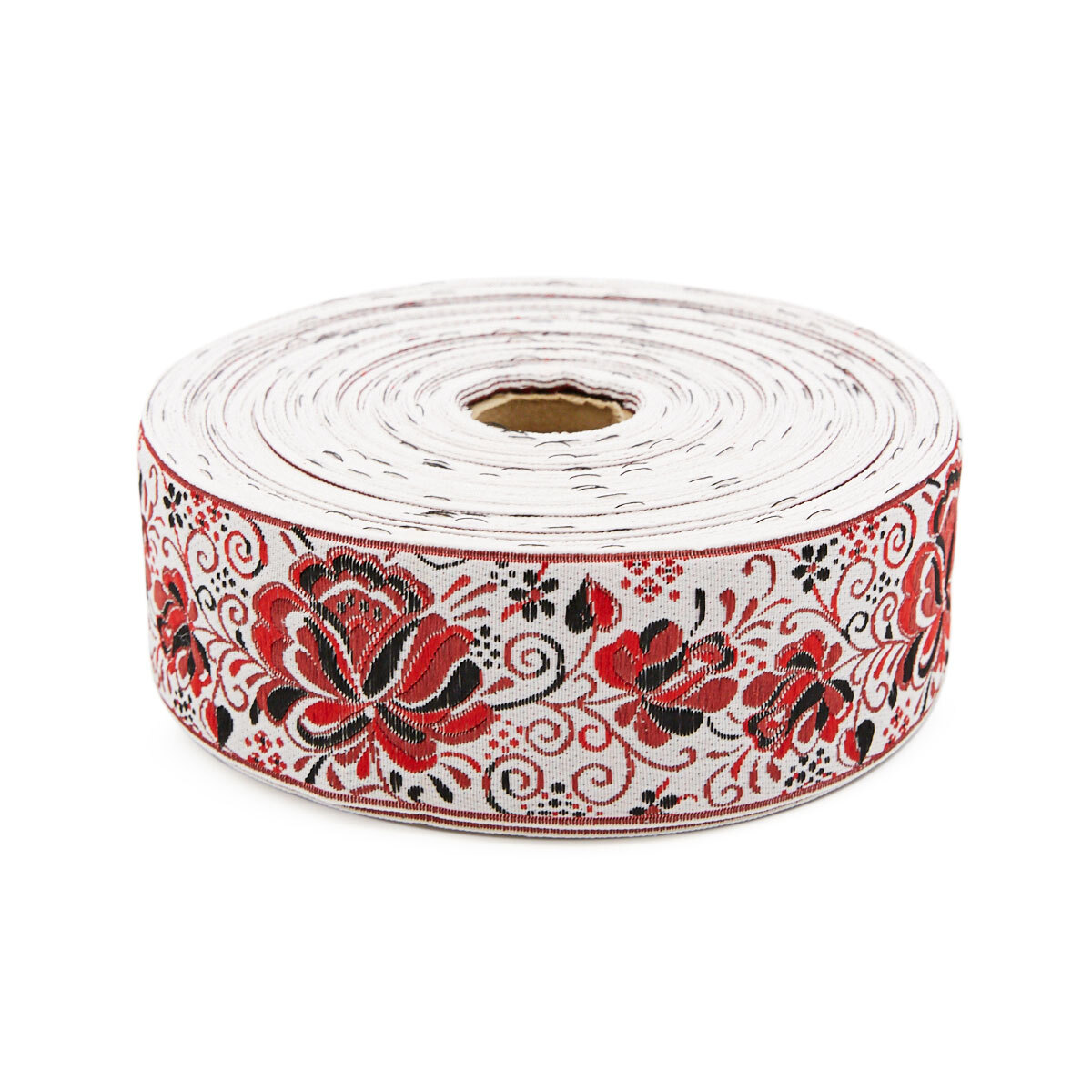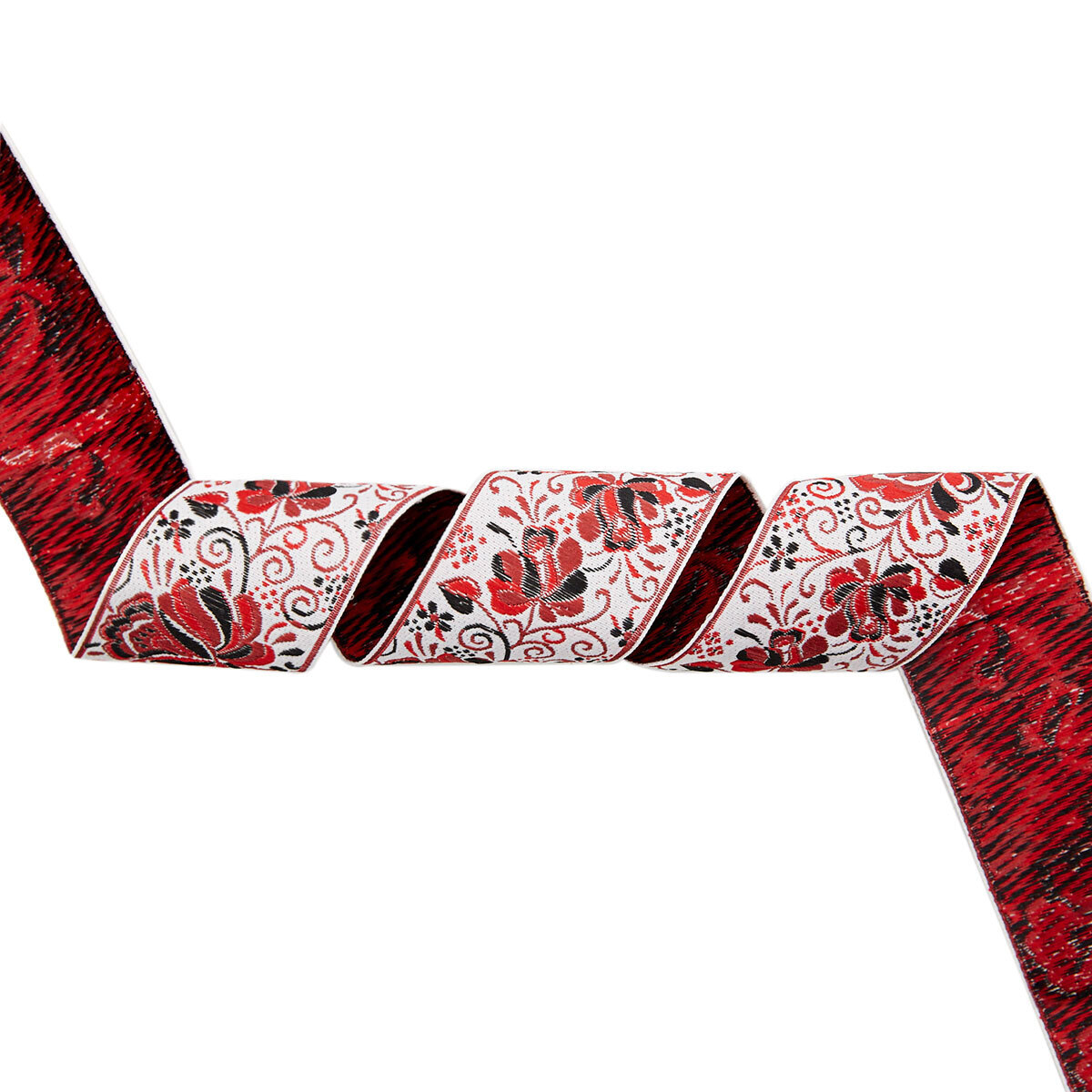 Лента (тесьма) жаккардовая 50.0 мм / 25±1 метров, рис. 9568 Гжель, (5 белый/красный/черный) С3379Г17