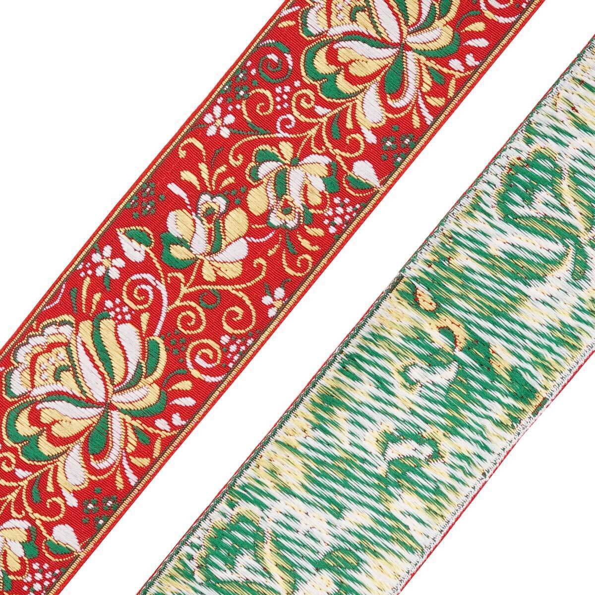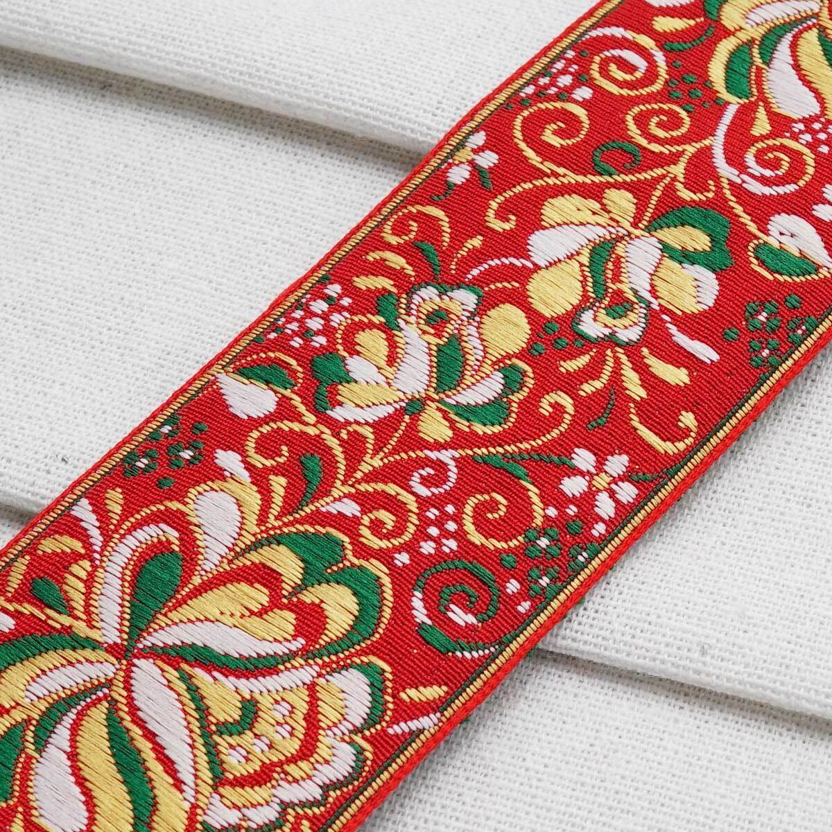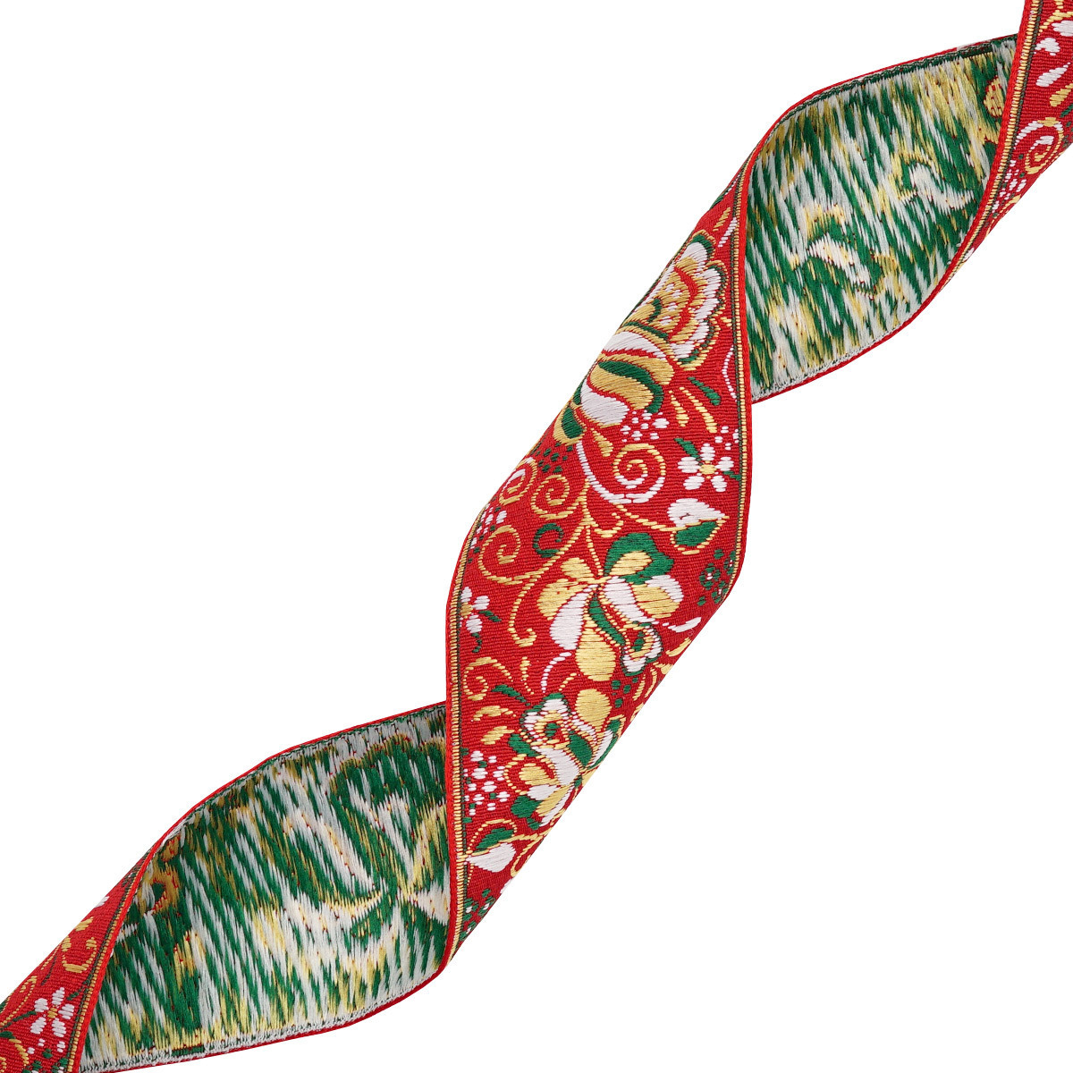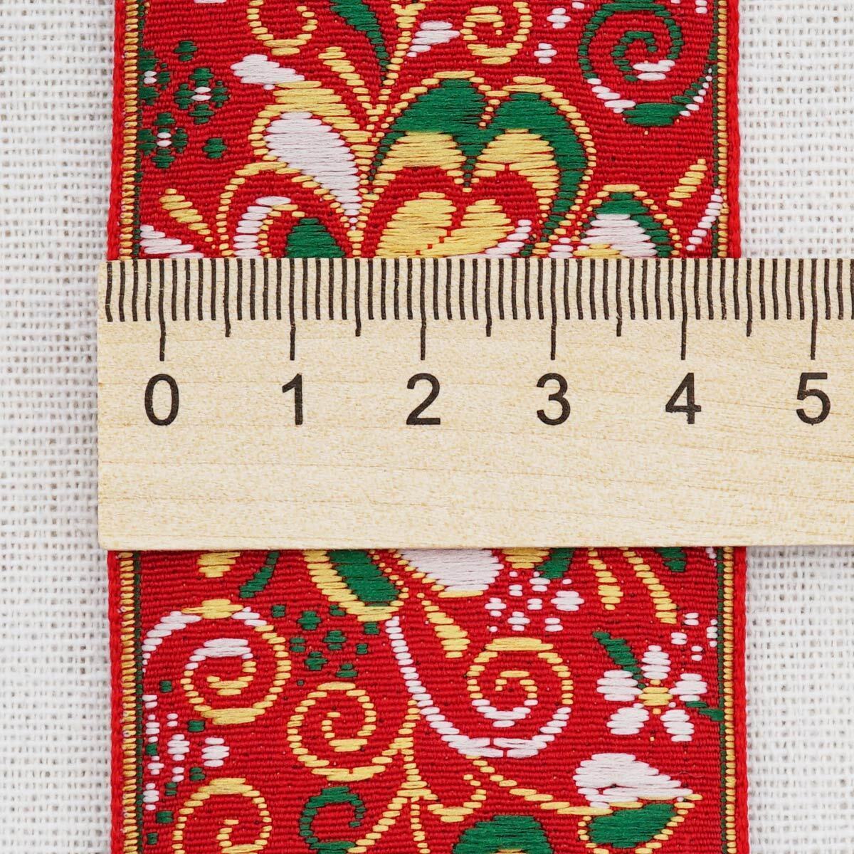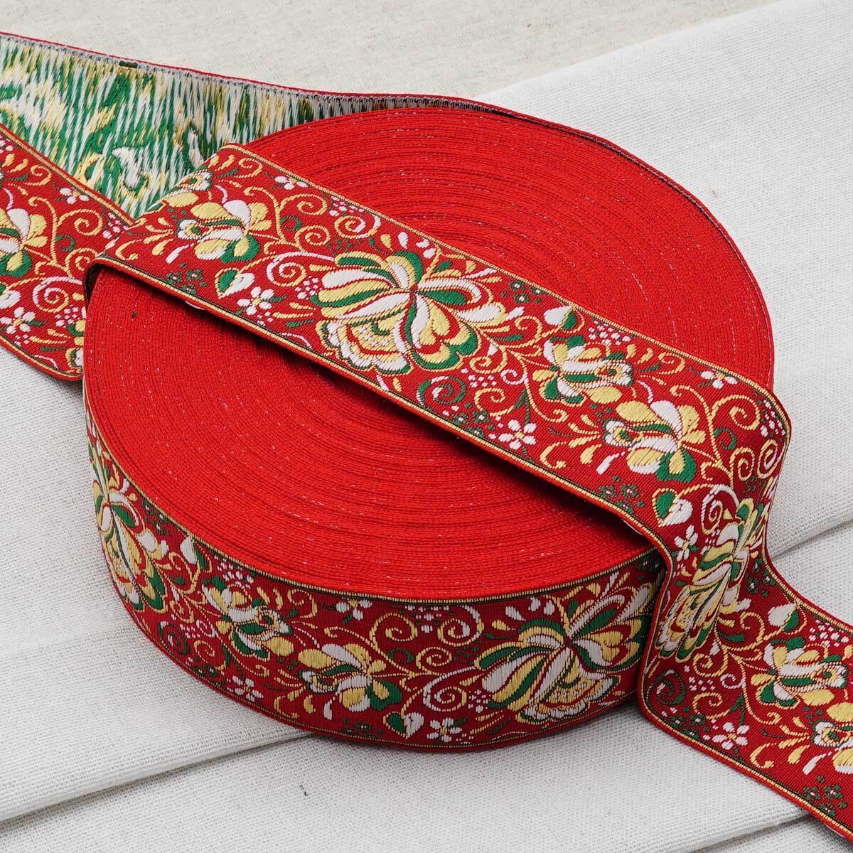 Лента (тесьма) жаккардовая 50.0 мм / 25±1 метров, рис. 9568 Гжель, (6 красный/зеленый/желтый/белый) С3379Г17