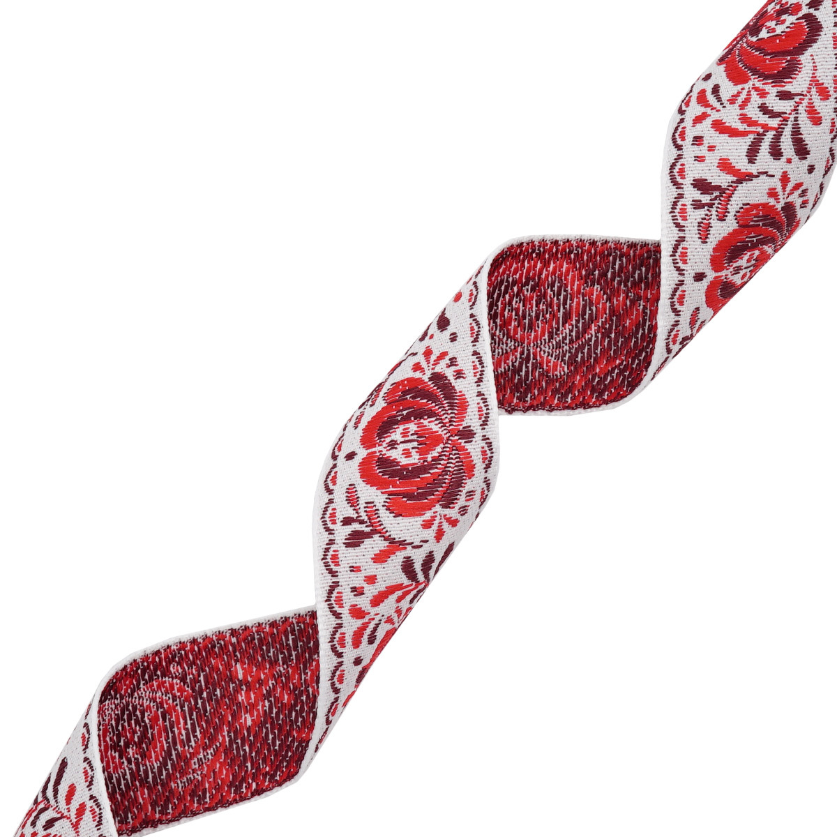 Лента (тесьма) жаккардовая 32.0 мм / 25±1 метров, рис. 9581 Гжель, (1 белый/красный/бордовый) С1853Г17