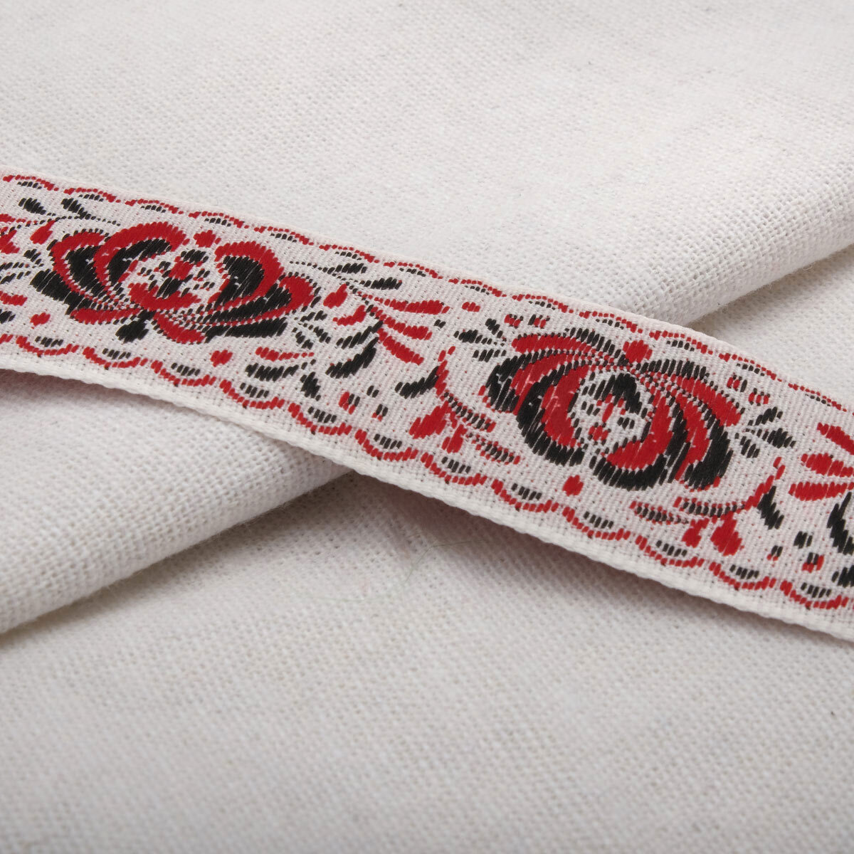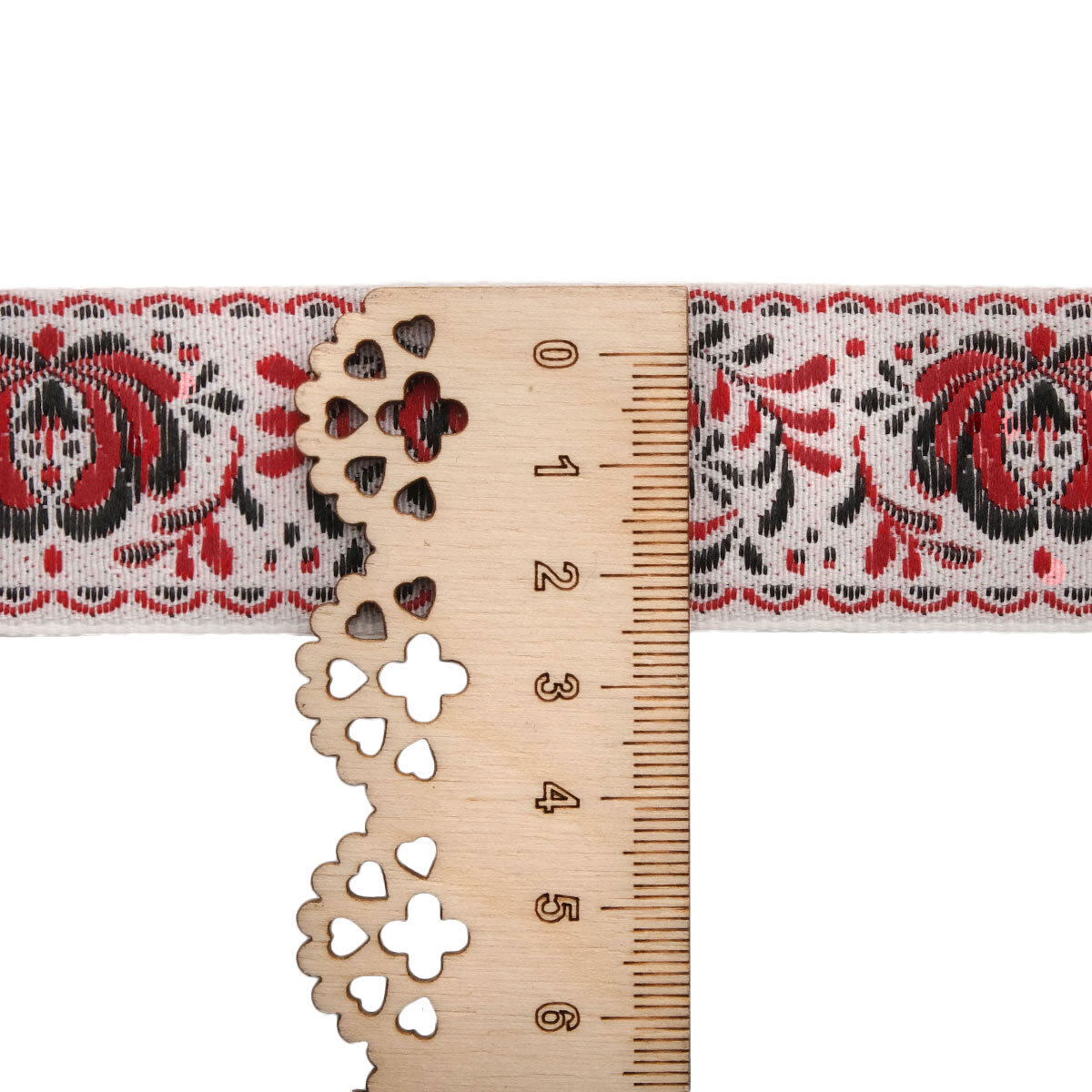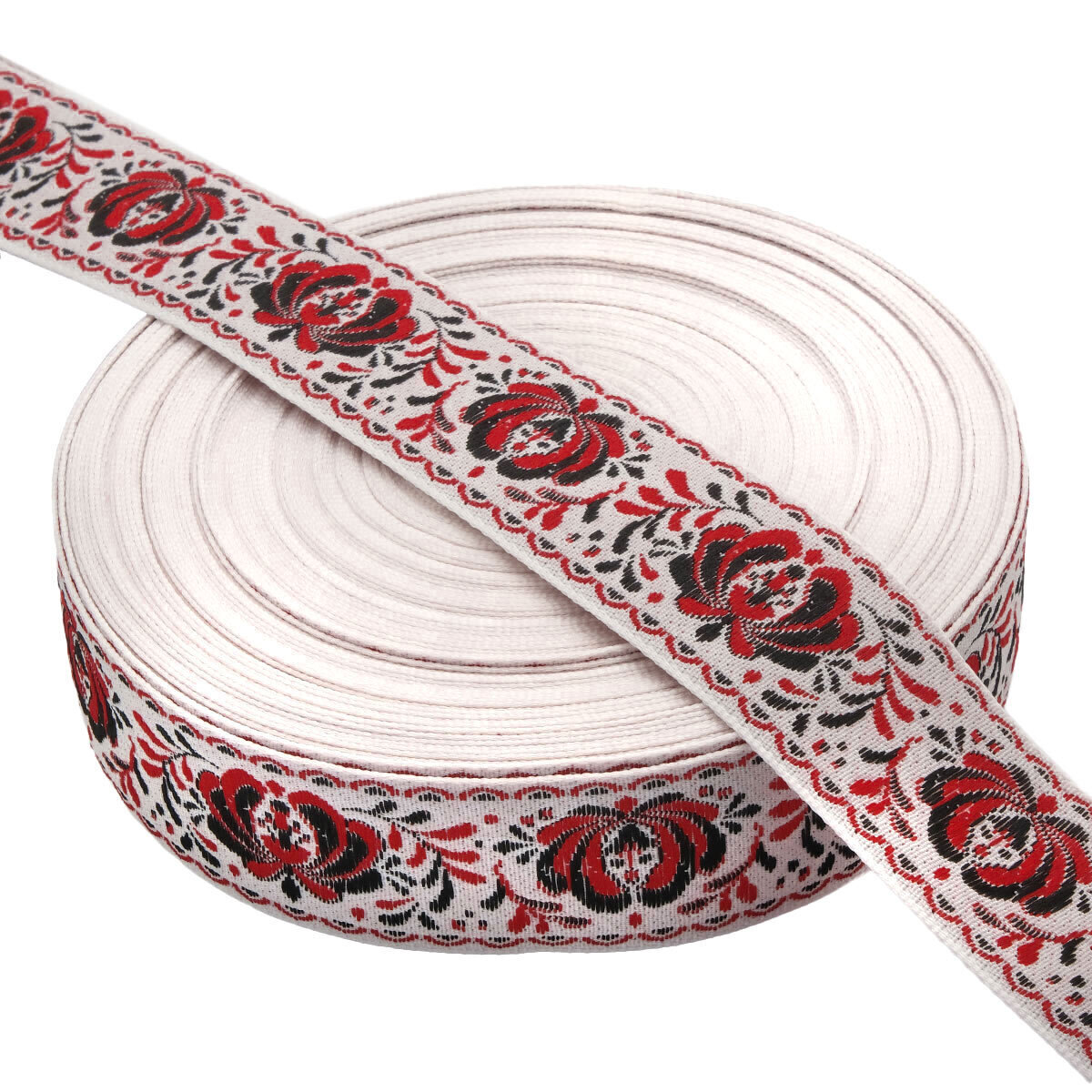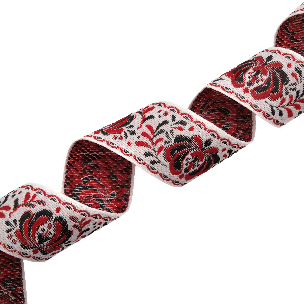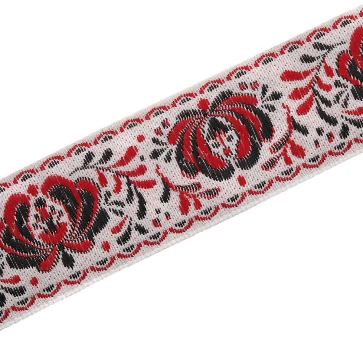 Лента (тесьма) жаккардовая 32.0 мм / 25±1 метров, рис. 9581 Гжель, (2 белый/красный/черный) С1853Г17