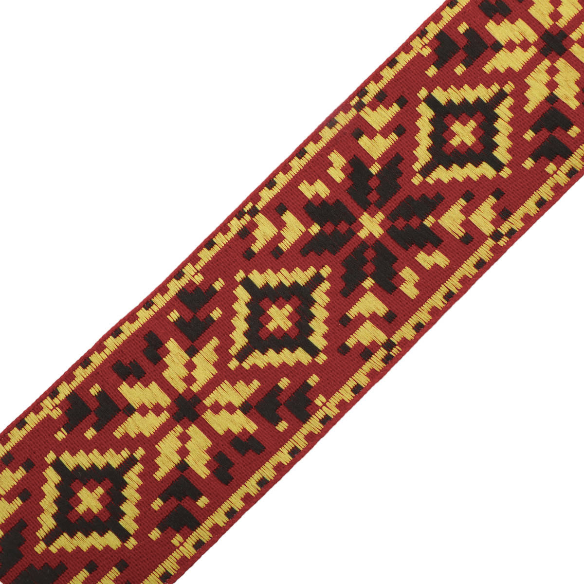 Лента (тесьма) жаккардовая 50.0 мм / 25±1 метров, рис. 9645, (2 красный/желтый/черный) С3379Г17