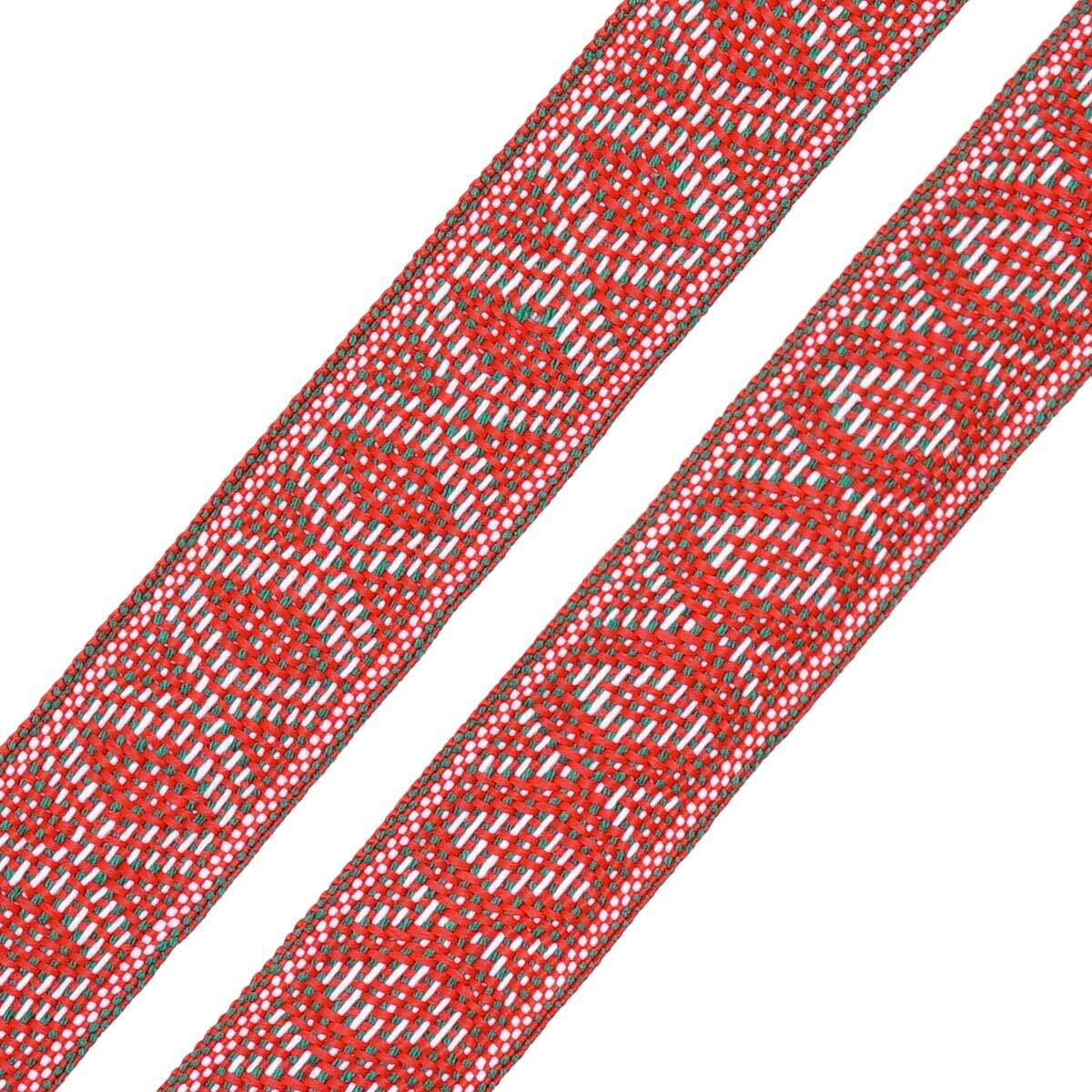 Лента (тесьма) жаккардовая 30.0 мм / 25±1 метров, рис. 9854, красный/зеленый/белый, С3881Г17
