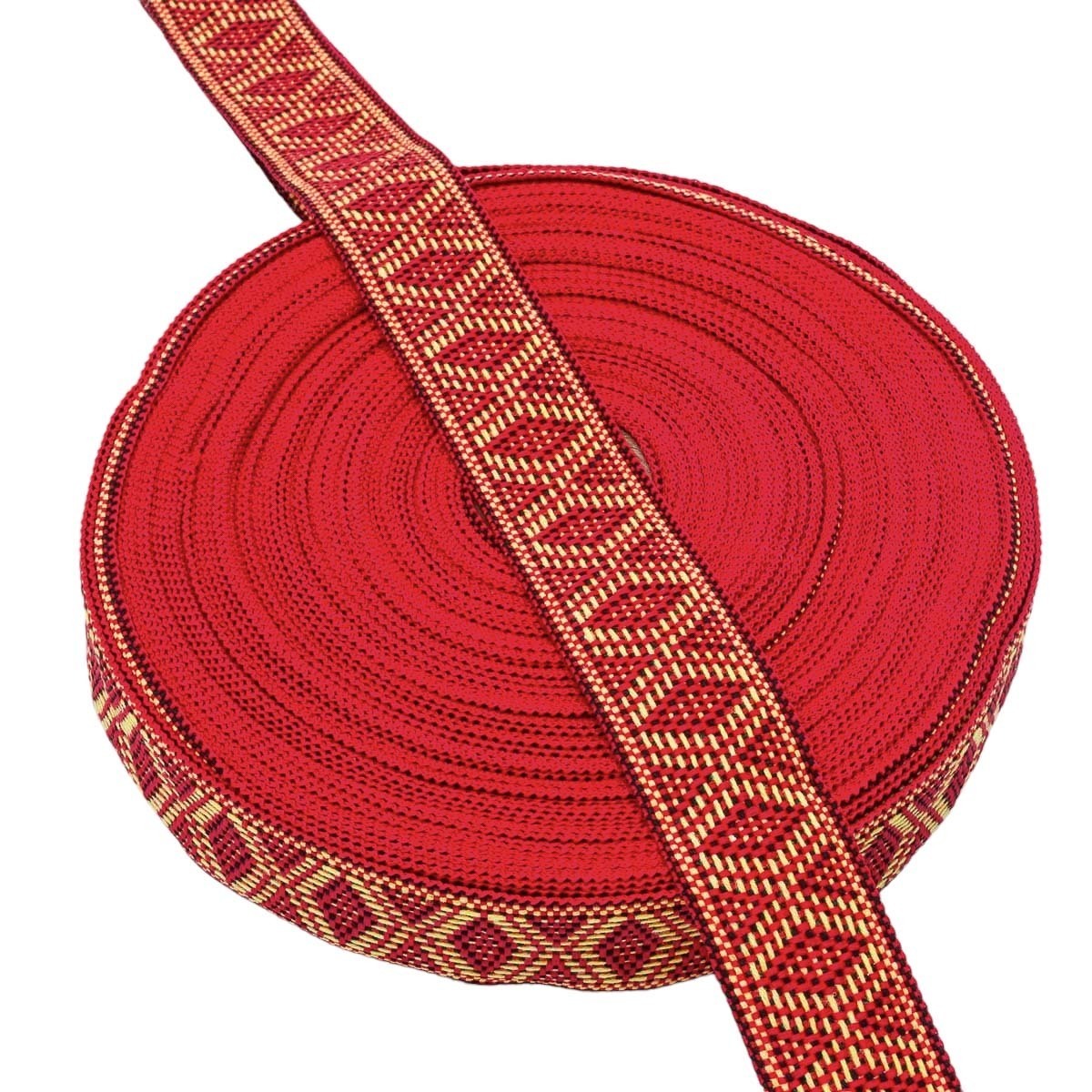Лента (тесьма) жаккардовая 30.0 мм / 25±1 метров, рис. 9854, красный/желтый/черный, С3881Г17