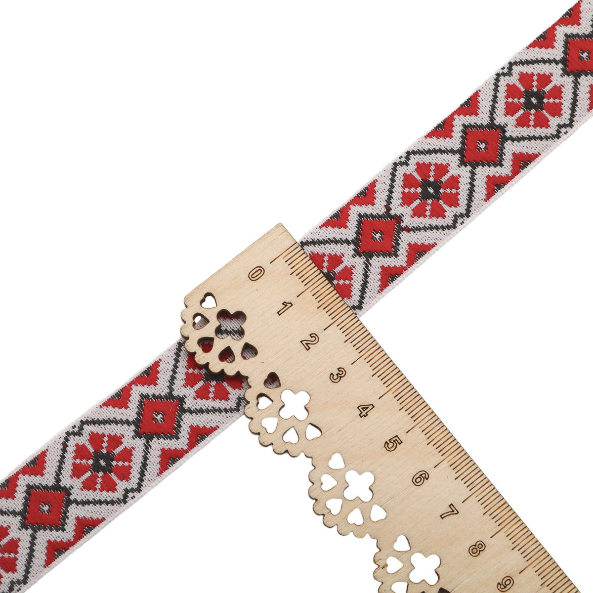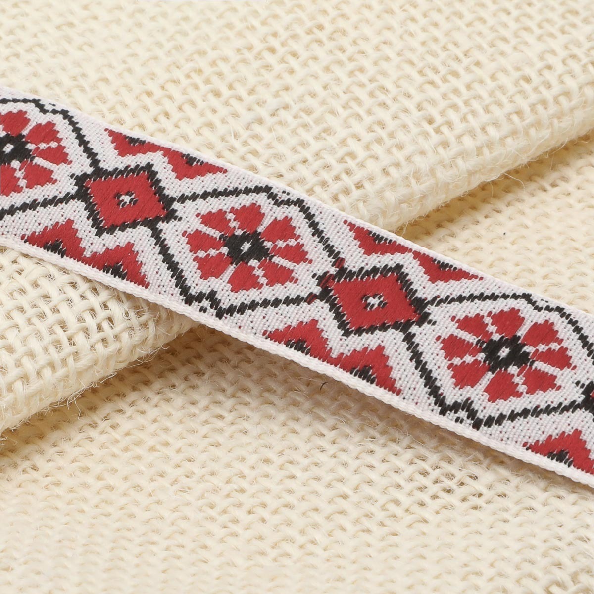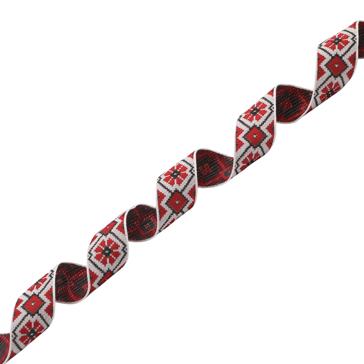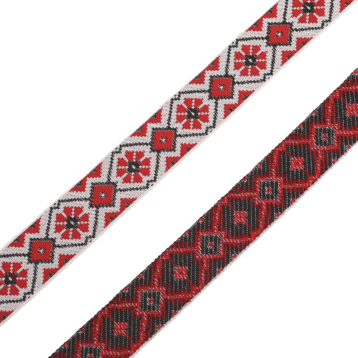 Лента (тесьма) жаккардовая 24.0 мм / 25±1 метров, рис.9623, 1 белый/красный/черный, С1852Г17