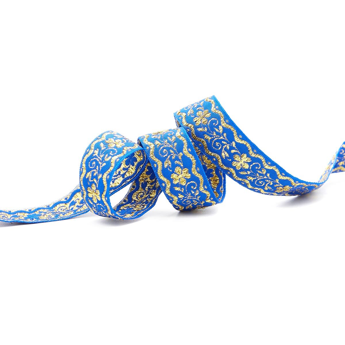 Жаккардовая лента имеет объемный плетеный узор, напоминающий вышивку. Поскольку рисунок образуется переплетением нитей, а не наносится на готовую ткань, он никогда не поблекнет и не сотрется. Металлизированные нити придают ленте нарядный блеск и торжественность. Применение: – украшение домашнего текстиля – покрывал, наволочек, мебельных чехлов; – отделка и ремонт предметов одежды, особенно одежды для выступлений; – такие ленты можно пришивать как ручки для сумок и рюкзаков, подвязок, подтяжек и ремней. Чтобы пришить жаккардовую ленту к материалу, используйте простую машинную строчку. Размер: ширина 24 мм, длина 25 м.