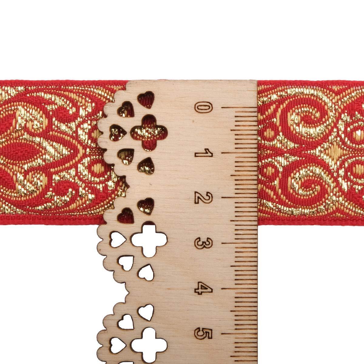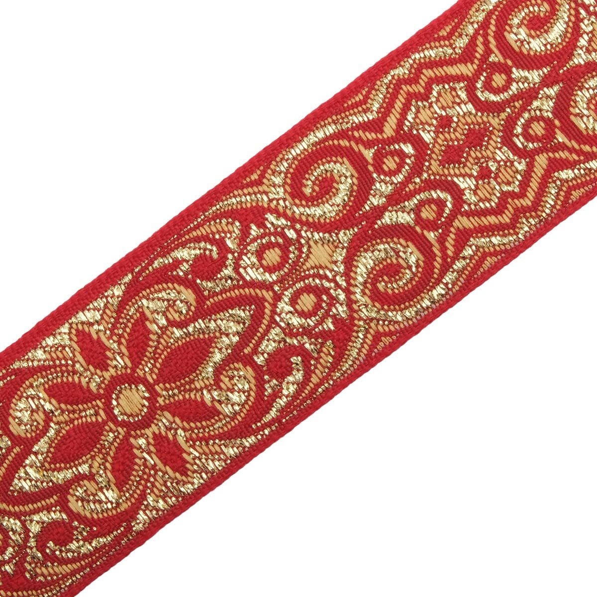 Лента (тесьма) жаккардовая 32.0 мм / 25±1 метров, с метанитом рис. 9171 (11 красный/желтый/золото) С3104Г17