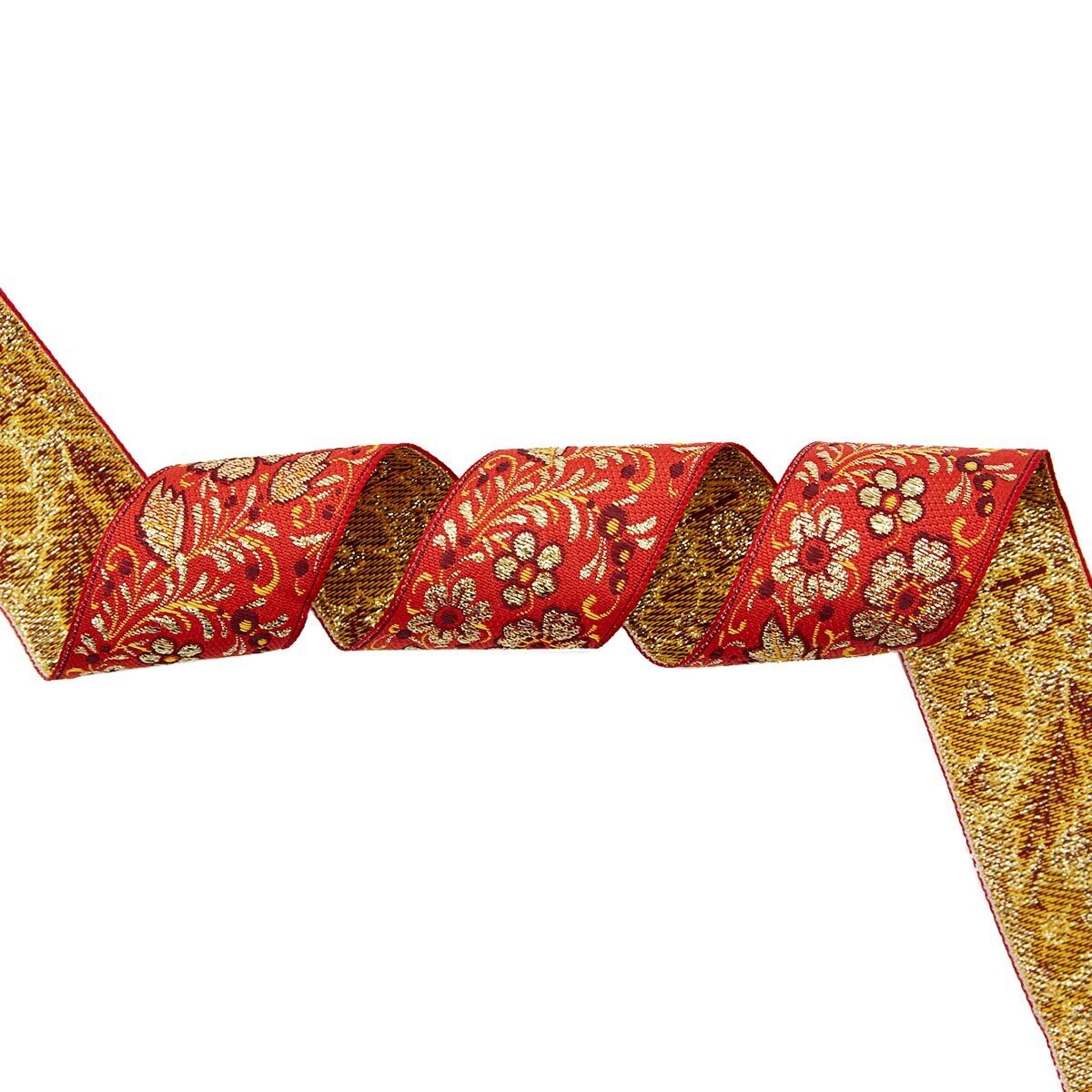 Лента (тесьма) жаккардовая 50.0 мм / 25±1 метров, с метанитом рис. 9560 Яблоневый цвет (6 красный) С3347Г17