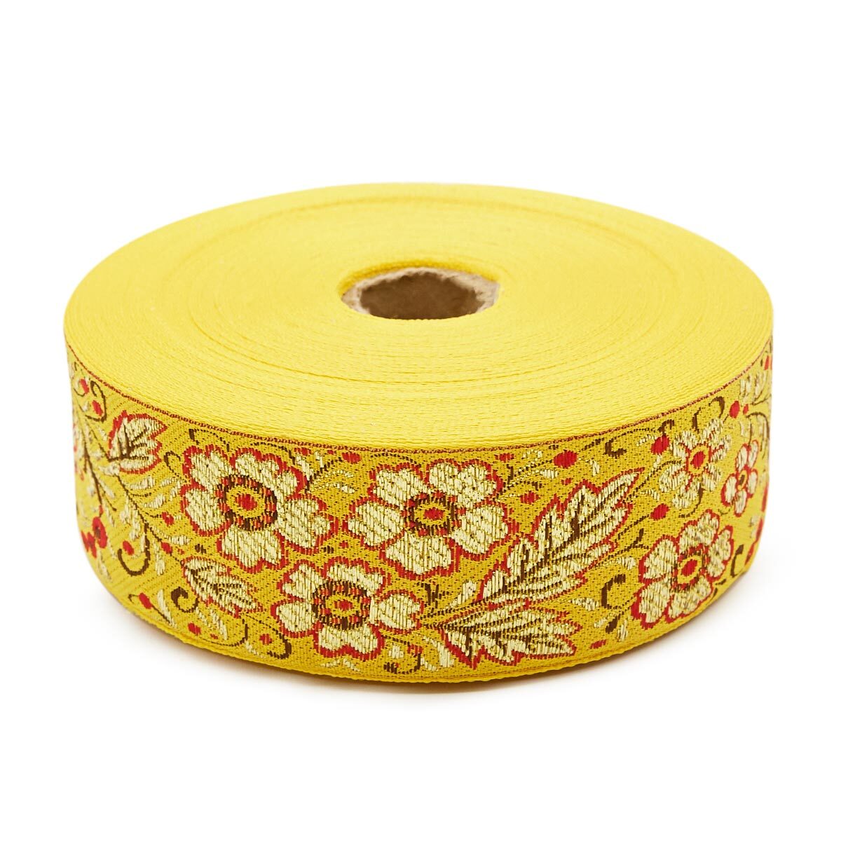 Лента (тесьма) жаккардовая 50.0 мм / 25±1 метров, с метанитом рис. 9560 Яблоневый цвет (7 желтый) С3347Г17