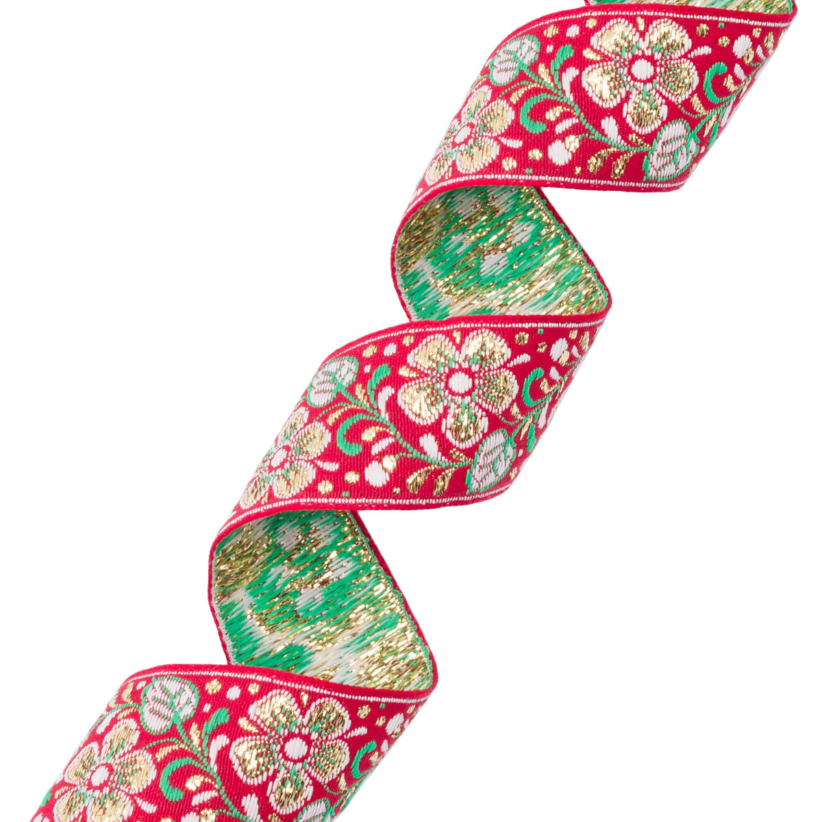 Лента (тесьма) жаккардовая 32.0 мм / 25±1 метров, с метанитом рис. 9565 Яблоневый цвет (1 красный) С3104Г17