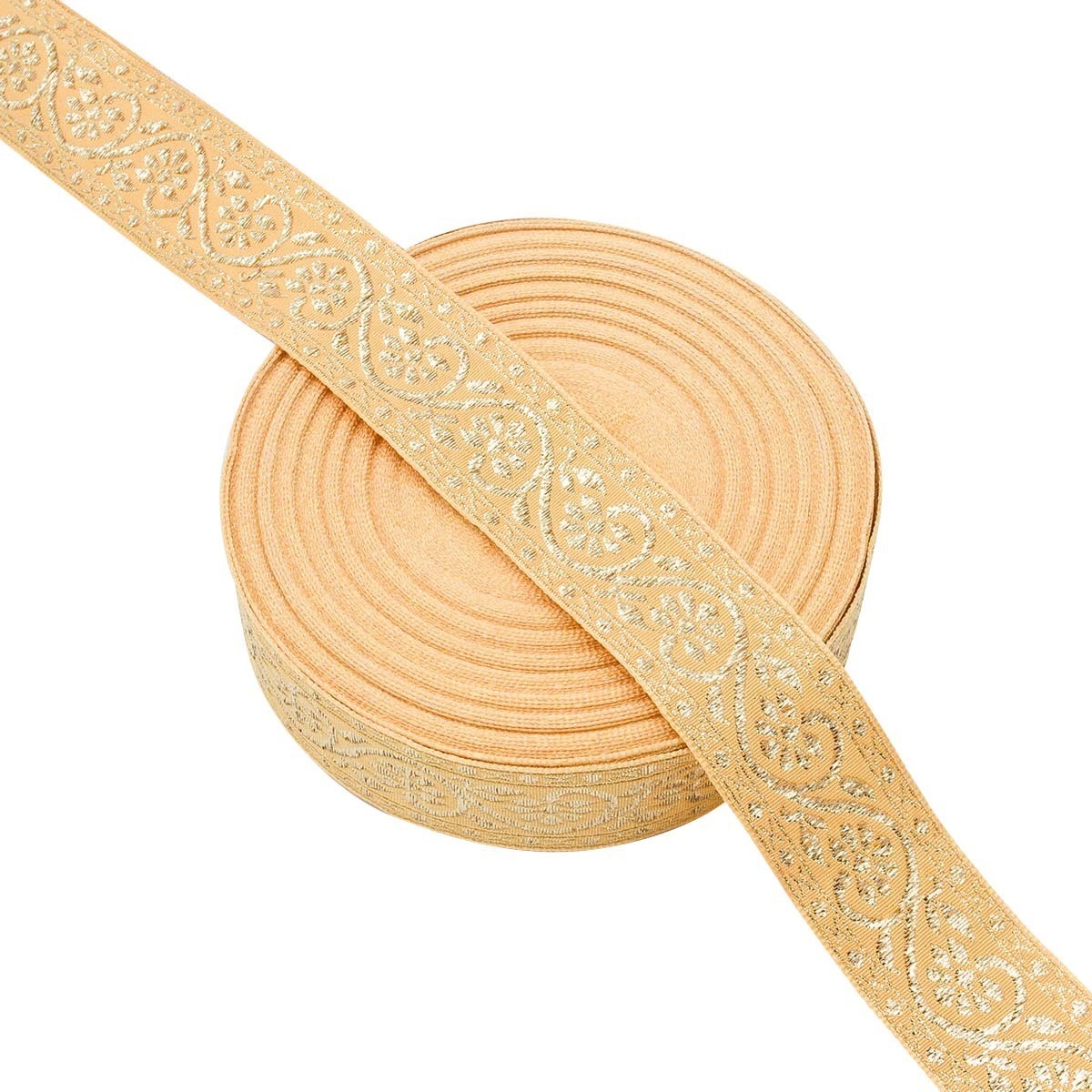 Лента (тесьма) жаккардовая 32.0 мм / 25±1 метров, с метанитом рис. 9819, желтый/золото, С3104Г17