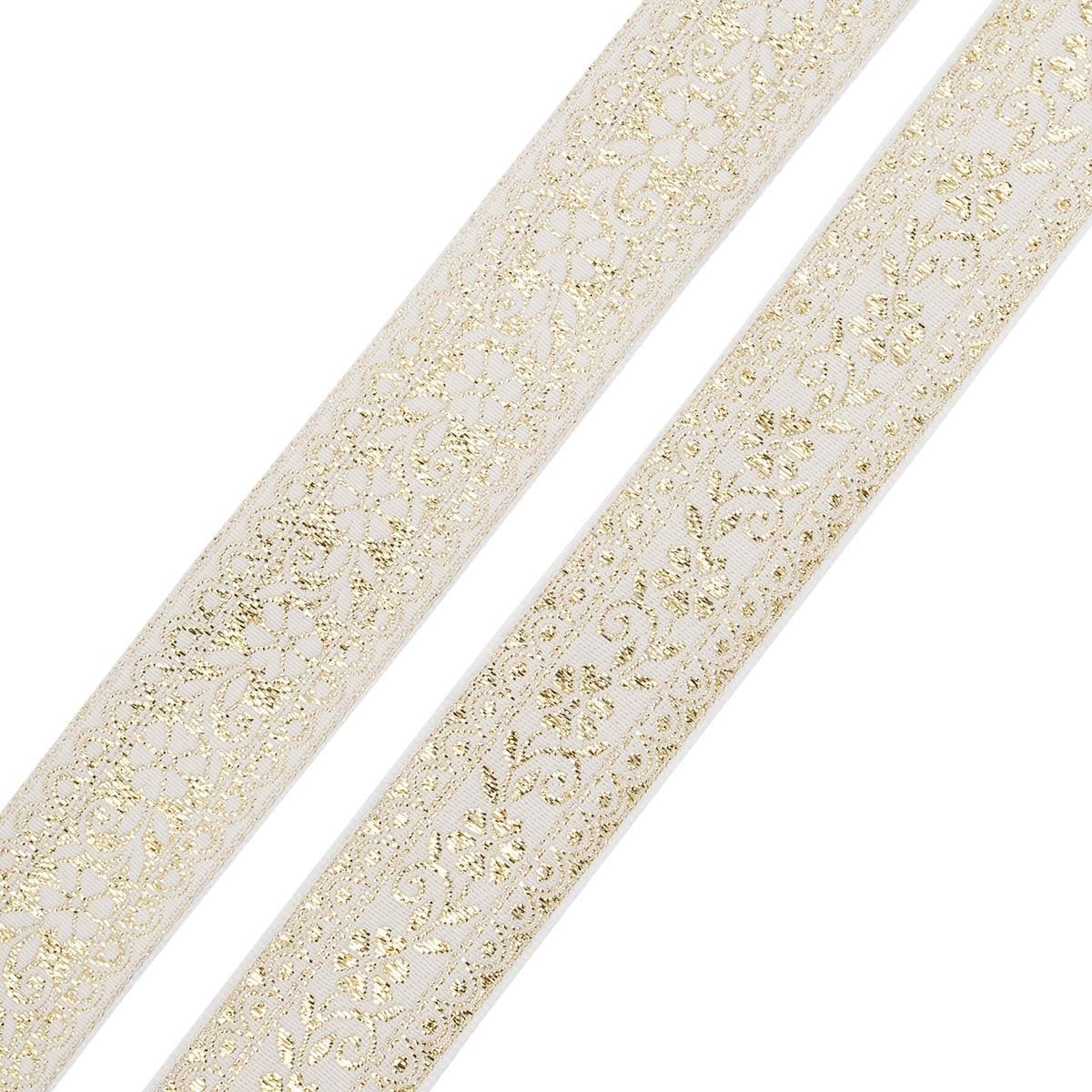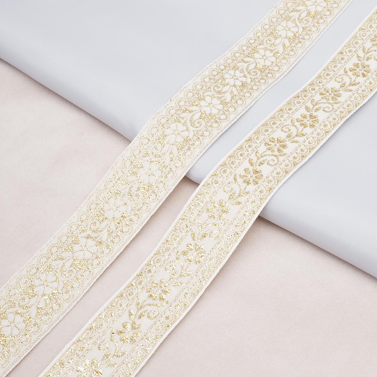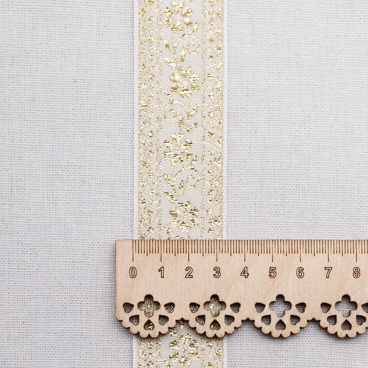 Лента (тесьма) жаккардовая 32.0 мм / 25±1 метров, с метанитом рис. 9842, белый/золото, С3104Г17
