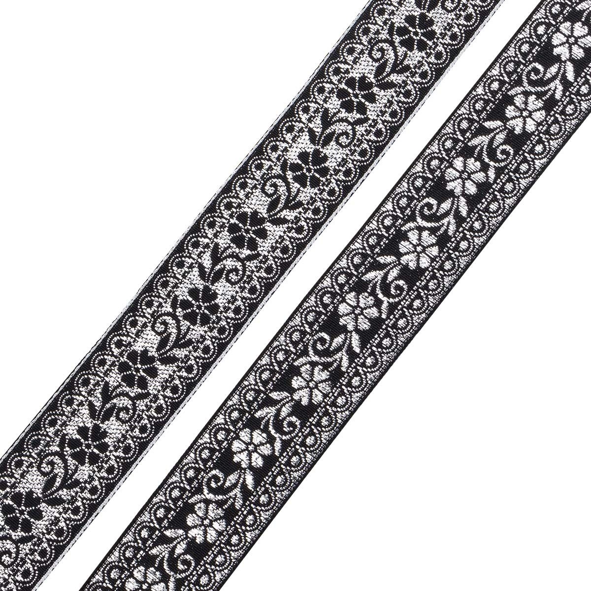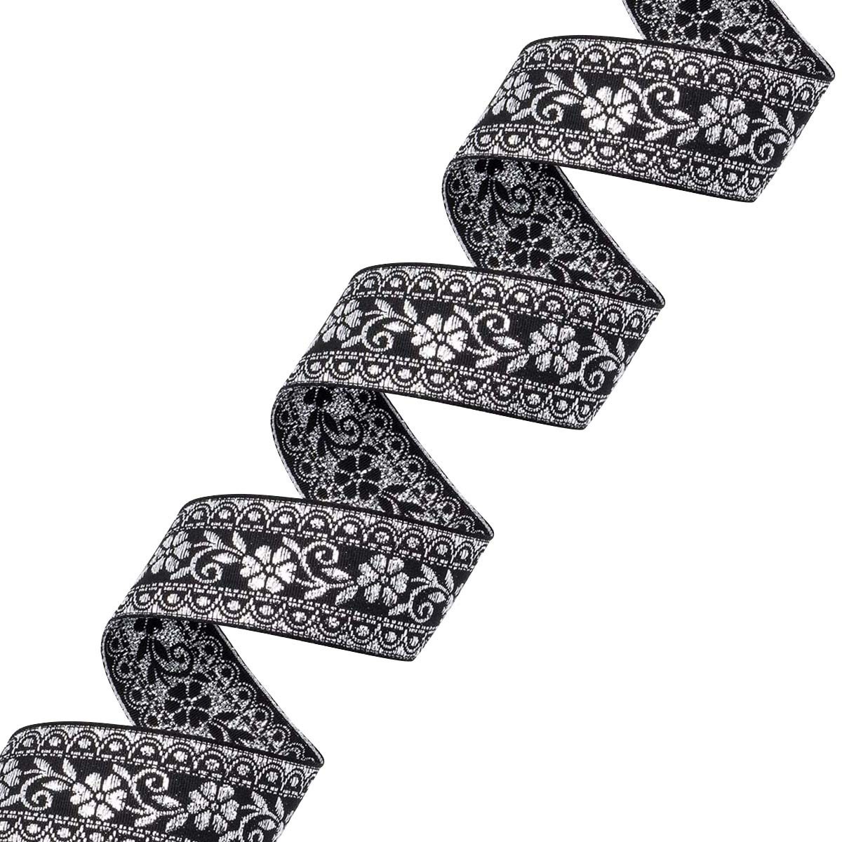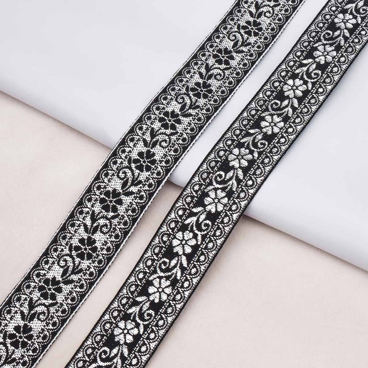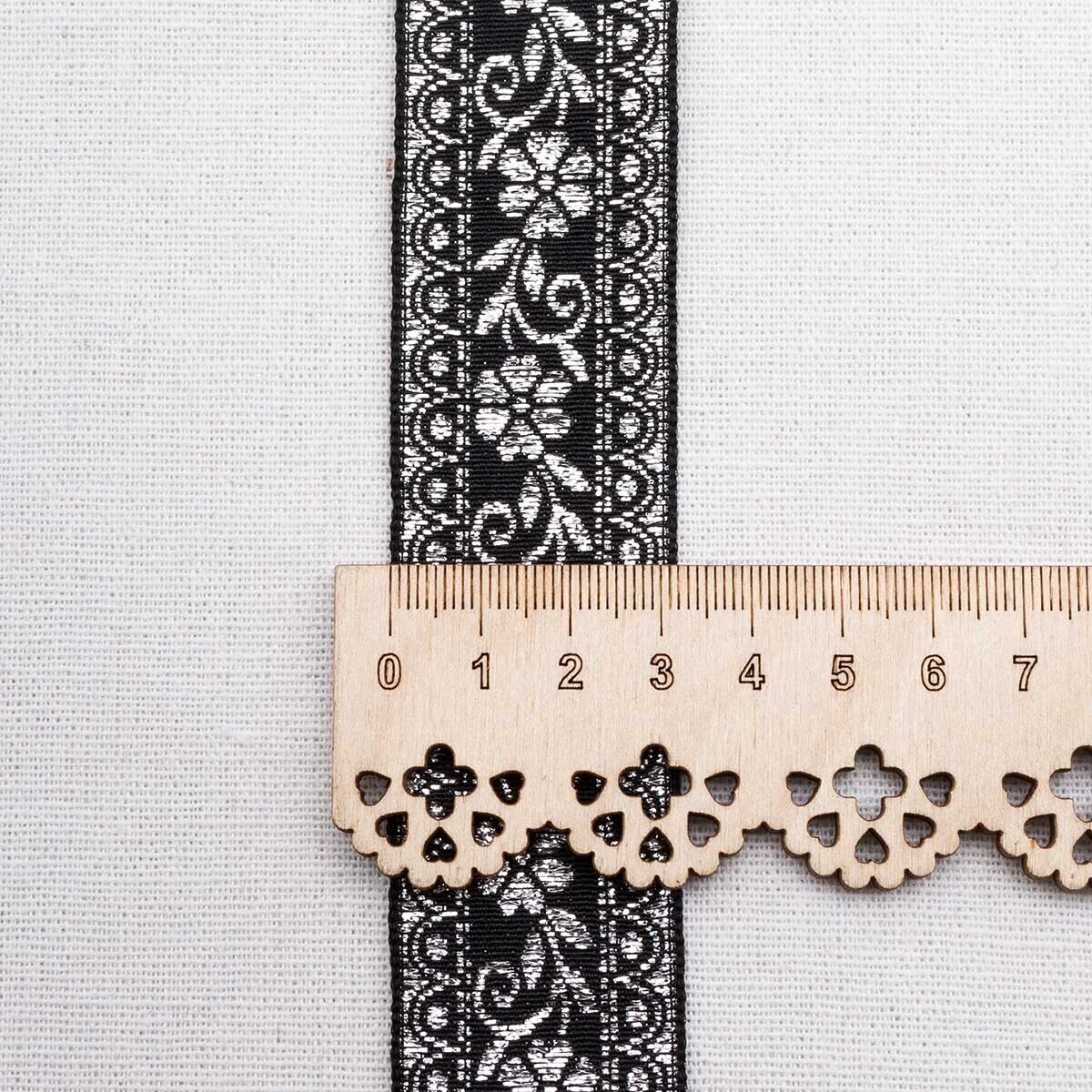 Лента (тесьма) жаккардовая 32.0 мм / 25±1 метров, с метанитом рис. 9842, черный/серебро, С3104Г17