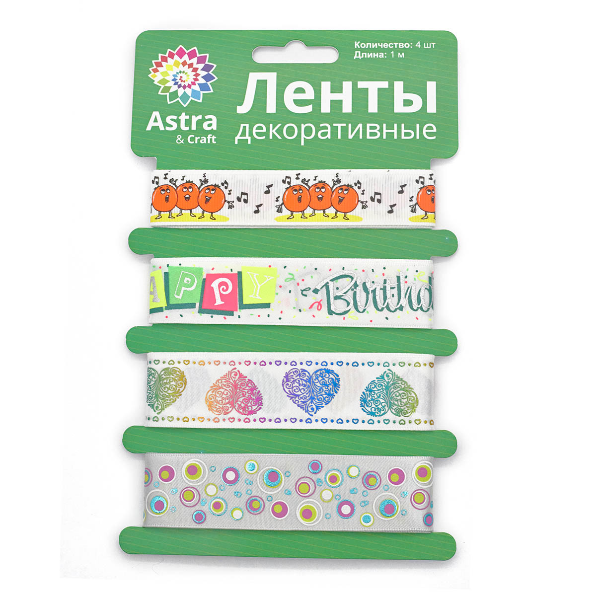 Лента декоративная С праздником, 20-25 мм, длина 1 м, 4 шт