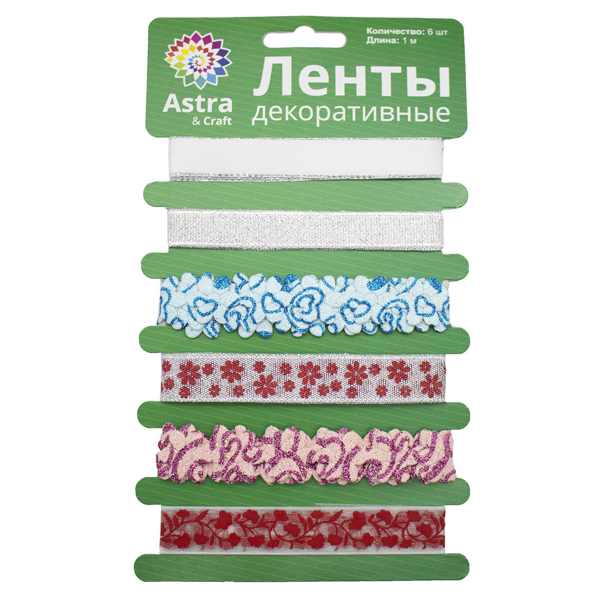 Фигурные и атласные ленточки – универсальная основа для рукоделия. Благодаря плетению 'рубчик' и тонкой кромке репсовые ленты особенно прочные и почти не мнутся. Атласные ленты привлекают внимание глянцевым блеском и ярким дизайном. Используйте ленты в наборе для любых творческих проектов: повяжите лентой подарочную коробочку, оформите букет живых или искусственных цветов. Другие идеи: – соберите бантик для резинки или заколки; – вплетите ленты в косу; – украсьте нарядное платье для куклы; – создайте декоративную шнуровку на платье, костюме для выступления; – сделайте закладку для ежедневника, блокнота или скрап-альбома. – используйте ленты для плетения браслетов, создания других авторских украшений. Цветовая гамма и рисунок лент гармонично сочетаются – это подчеркнет ваш вкус. В наборе: лента 'Цветочки' (ширина 15 мм), цвет серебро/красный; капроновая (ширина 1,6 см), ленты фигурные 'Цветочки' (ширина 18 мм), цвет розовый, синий; лента атласная односторонняя с серебряной нитью (ширина 15 мм), цвет белый; лента металлизированная, ширина 12 мм, цвет серебро. Всего 6 шт. по 1 м.