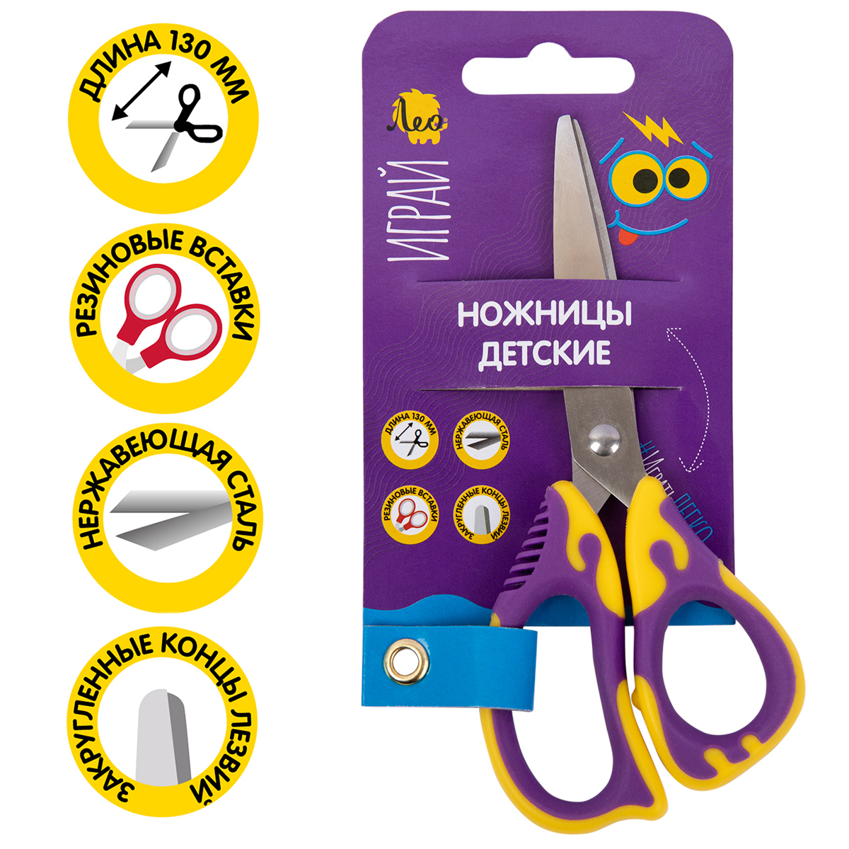 Ножницы серии Играй с эргономичными ручками помогут уменьшить нагрузку на руку ребенка даже при продолжительной работе, яркие желто-фиолетовые ручки добавят эмоций к любимому занятию творчеством. Длина ножниц 130 мм.