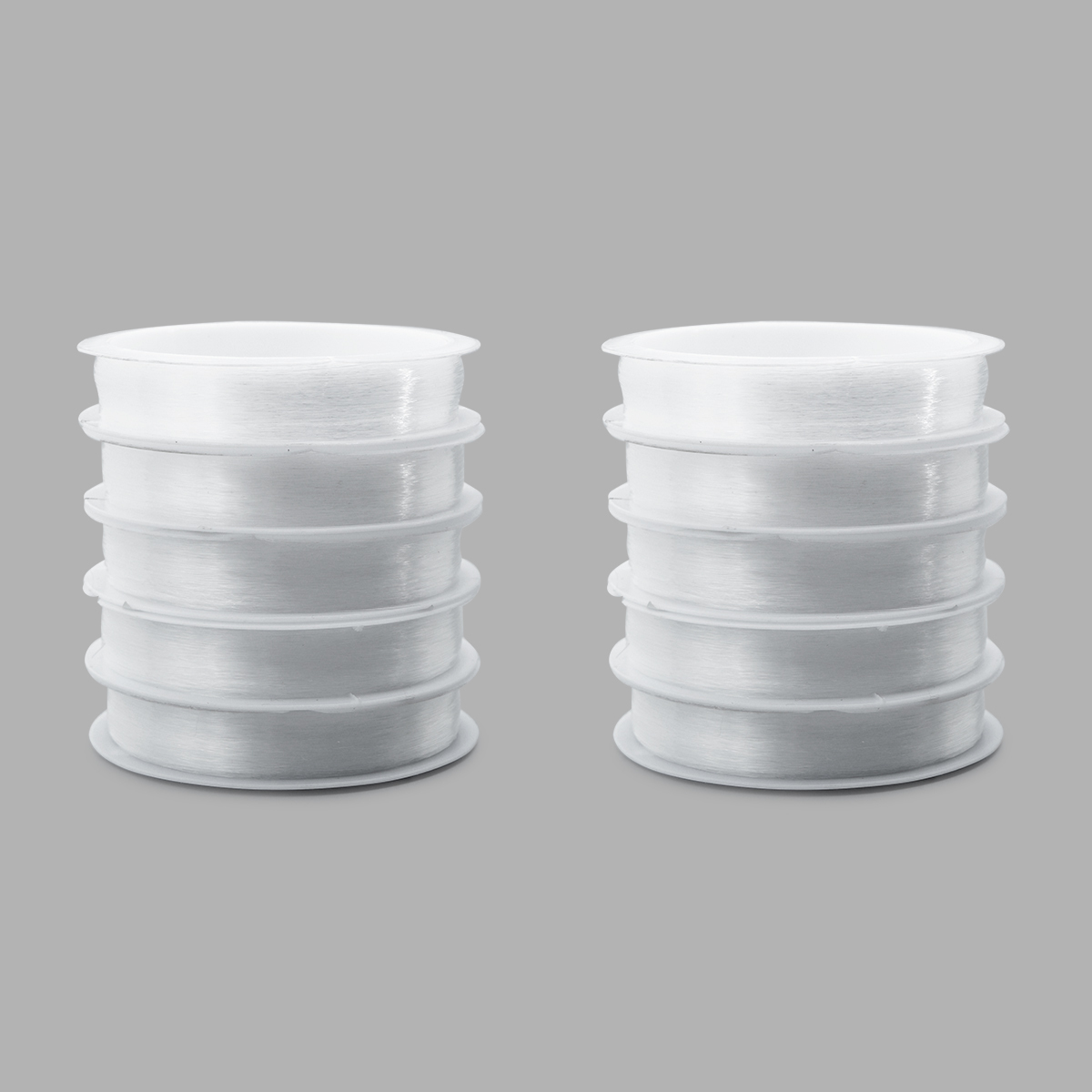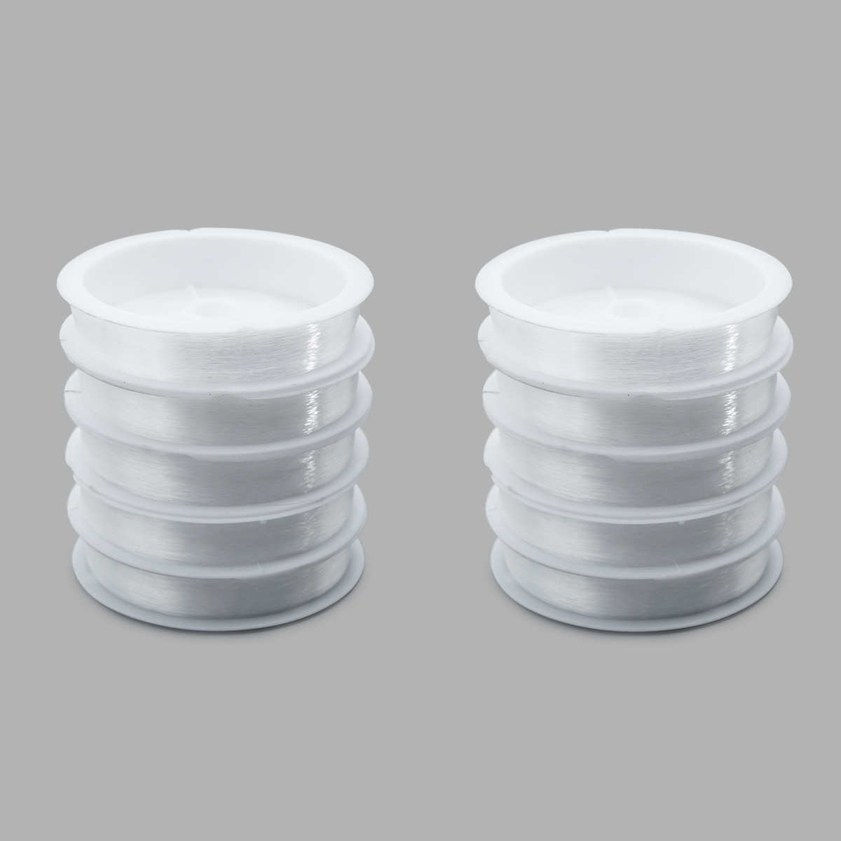 Леска представляет собой непрерывное волокно. Прочная на разрыв, очень гладкая, бисер и бусины хорошо скользят по ней. Подходит для плотного или сетчатого плетения браслетов, ожерелий, чокеров, авторских украшений для волос и других изделий. Чтобы закрепить плетение, просто завяжите леску узелком. Размер: толщина 0,2 мм, длина на катушке – 100 м. В упаковке 10 бобин – этого хватит на несколько украшений.