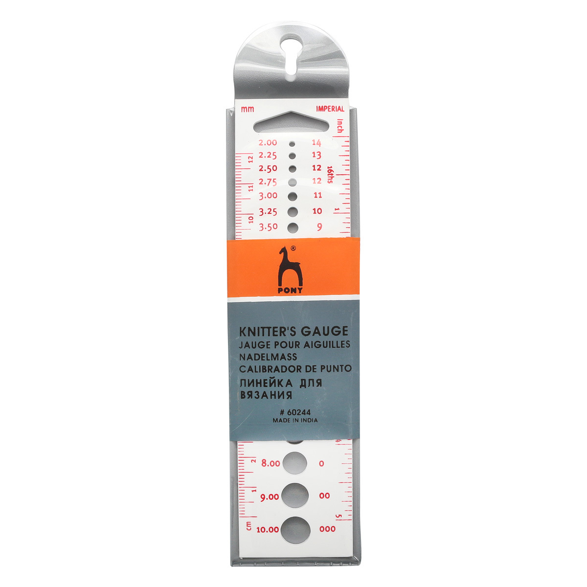 Линейка для измерения диаметра спиц от бренда Pony это очень полезный атрибут для рукодельниц, любящих творить с комфортом, создающих вещи в различных техниках и из пряжи разной толщины. Линейка из пластика с отверстиями предназначена для измерения диаметра спиц. Компания Pony (Индия) известна во всем мире, и заслуженно пользуется уважением покупателей, благодаря высокому качеству изделий и широчайшему ассортименту. Вся продукция, выпускаемая под брендом Pony, проходит строгий контроль качества. Вам остается только получать удовольствие от рукоделия – все остальное PONY продумал до мелочей! Благодаря удобной линейке для измерения диаметра спиц вы получите удовольствие от процесса и результата работы. Качественное вспомогательное приспособление для вязания это отличный подарок для мастерицы. Возможный диаметр спиц: от 2 до 10 мм.
