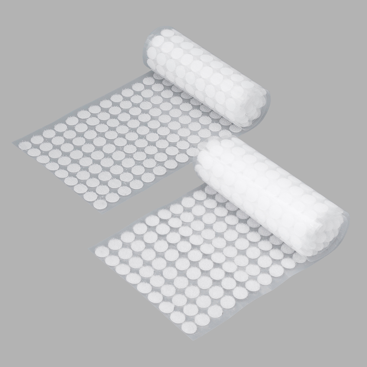 Лента контактная липучка (велкро) клеевая круг ⌀10 мм, 504 пары (2 рул), белый, качество "А"