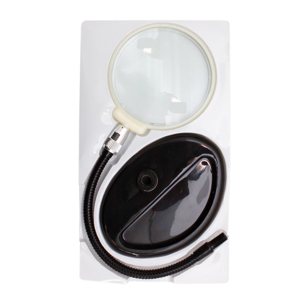 Лупа настольная позволяет удобно организовать рабочее пространство. Располагается на тяжелой металлической платформе-основании, поэтому можно не беспокоиться о том, что она случайно опрокинется. Гибкая ножка позволяет регулировать высоту и расположение лупы так, как вам удобно. Лупа настольная модели MG15119 подходит для различных ситуаций: – вышивание, занятия рукоделием (только в закрытых помещениях); – чтение при недостаточном освещении; – работа с мелкими деталями, сборка и ремонт механизмов, приборов. Коэффициент увеличения: 4. Количество линз: 1. Диаметр 10,4 см, длина гибкой ножки 25 см.