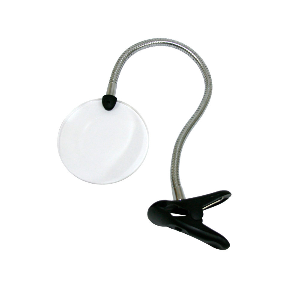 При помощи металлического зажима лупу можно закрепить на столе, пяльцах, раме; имеется отверстие для закрепляющего винта. Длина гибкого кронштейна 46 см.
