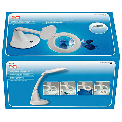 Лупа Prym с подсветкой поможет удобно организовать ваше рабочее место. Подходит для вышивания, рукоделия, чтения при недостаточном освещении, сборки и ремонта украшений, филателии, маникюра и других работ. Гибкая ножка на шарнире позволяет регулировать высоту и расположение лупы так, как вам удобно. Имеется встроенная круговая лампа дневного света, цвет белый. Лампа ярко освещает рабочее место и позволяет защитить глаза от усталости. Внимание: всегда в продаже запасная лампа от Prym для данной лупы, артикул 610717. Специальная крышка защищает линзу от пыли и царапин и позволяет использовать лупу как настольный светильник. Характеристики: Питание от электросети 220-240 В. Потребляемая мощность: 12 Вт. Количество линз: 2, основная с коэффициентом увеличения 2,0 и дополнительная, для 4-кратного увеличения. Материал линзы: стекло. Диаметр основной линзы: 95 мм. Высота: 44 см. Высота лупы под углом: 35 см. Размер основания: 17 х 14 см. Длина шнура питания: 145 см.