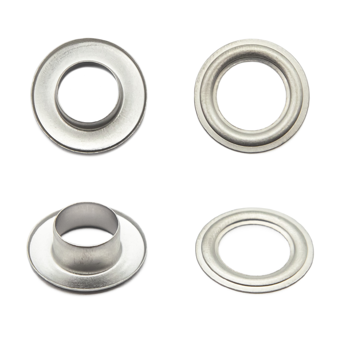 Люверсы - фурнитура, которая играет ключевую роль в укреплении круглых отверстий в различных материалах. Люверсы обеспечивают долговечность этих отверстий и придают изделиям аккуратный и завершенный вид. Люверсы активно используют в производстве спортивной, повседневной и рабочей одежды. Кроме того, люверсы необходимы в различных аксессуарах: головных уборах, обуви и сумках. Они также применяются при создании рекламных материалов и печатной продукции. Люверсы для одежды изготовлены из прочного металла, выдерживающего стандартные нагрузки. Материал обладает высокой стойкостью к коррозии, а также способен сохранять свой первоначальный цвет и внешний вид на протяжении длительного времени, даже при воздействии неблагоприятных условий. Процесс установки люверсов достаточно прост, но требует аккуратности и внимательности. Монтаж люверсов производится путем размещения втулки со шляпкой на лицевую сторону материала и кольца на изнаночную. Завершается процесс монтажа с помощью специального инструмента для закрепления люверсов. Инструмент для установки приобретается отдельно.