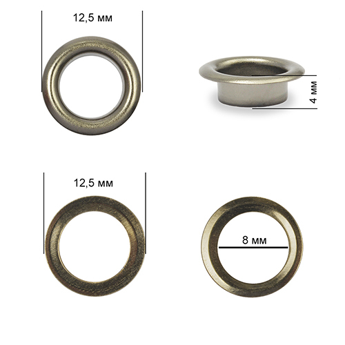 Люверсы металл ⌀_8.0 мм (внутр.), внешн. ⌀12.5 мм (внутр.), h4 мм (внутр.), №5, сталь, цв.никель черный, 500 шт, TBY