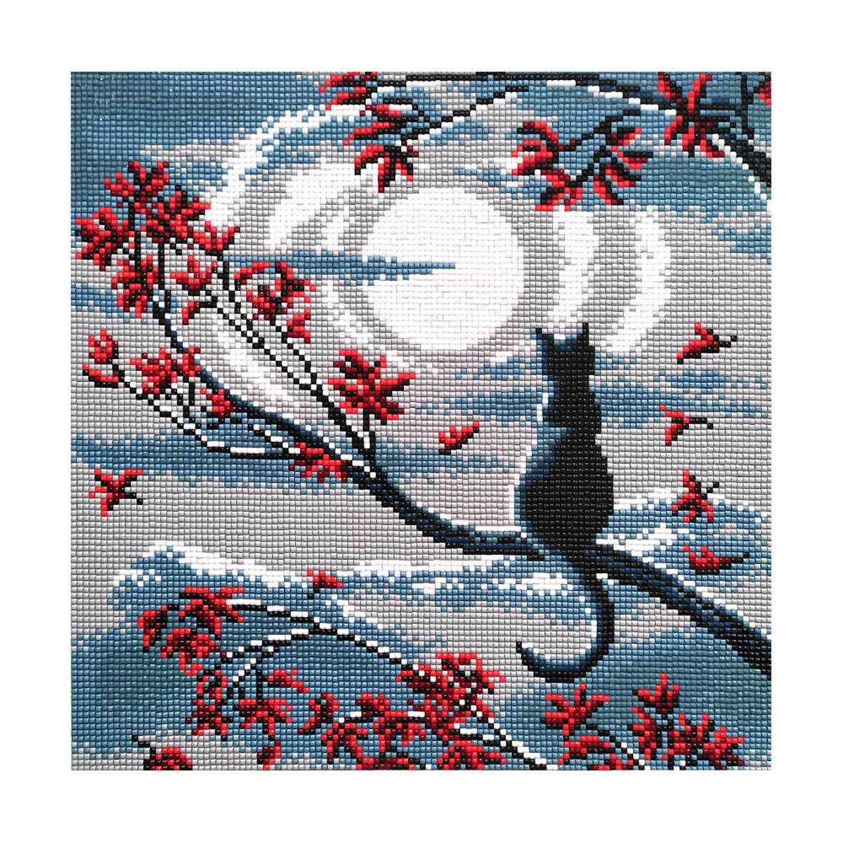 Алмазная (кристальная) мозаика Овен, Лунный кот 30х30см