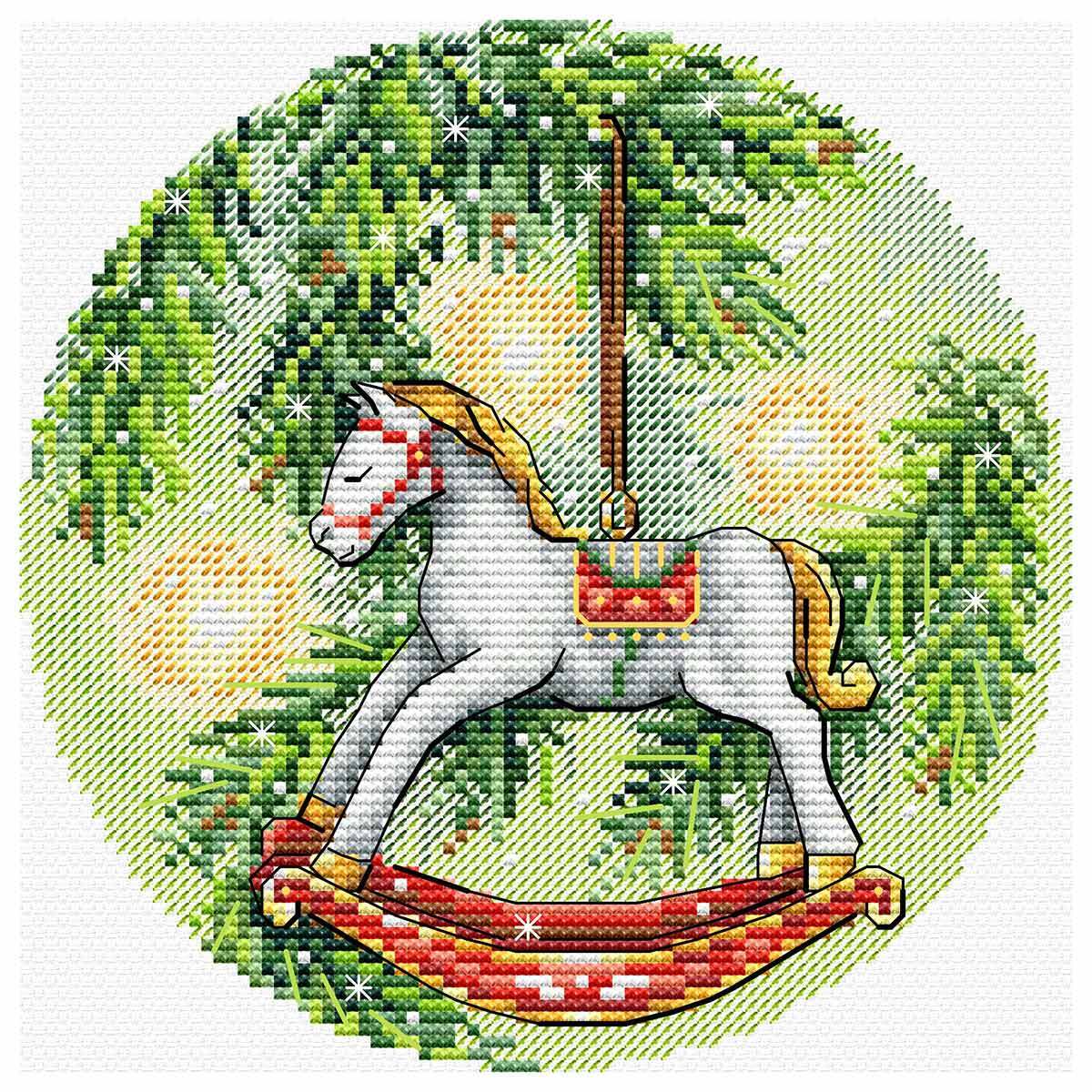 Набор для вышивания нитками МП Студия М-1252, Новогодняя лошадка, 16х16 см
