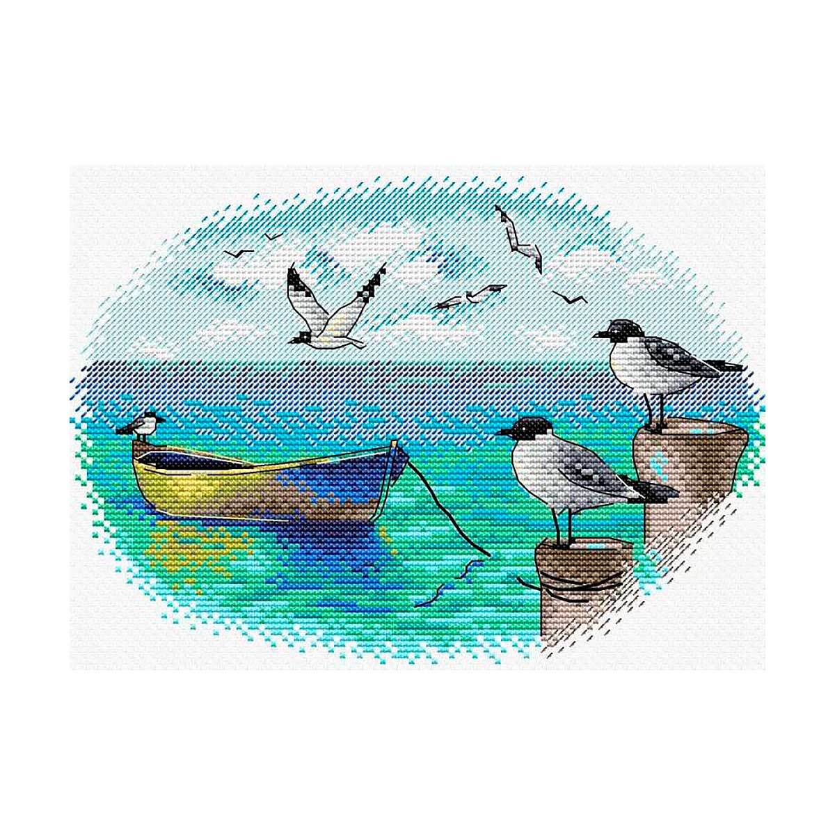 Набор для вышивания нитками МП Студия, На пристани 22х16см