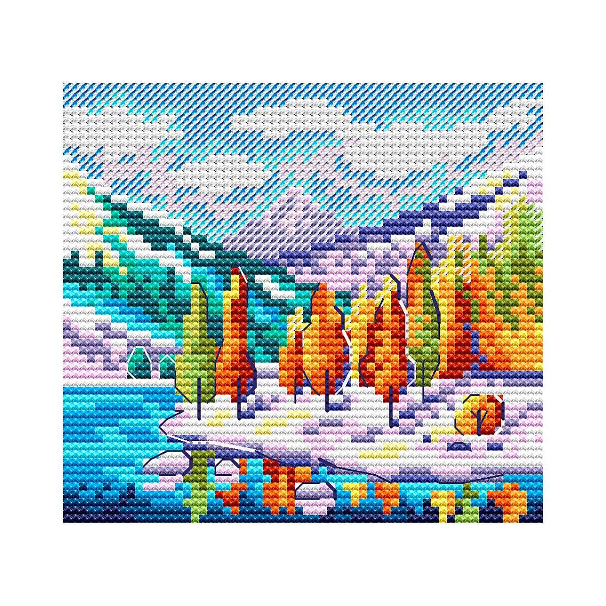 Набор для вышивания нитками МП Студия, Осень в горах 11х10см
