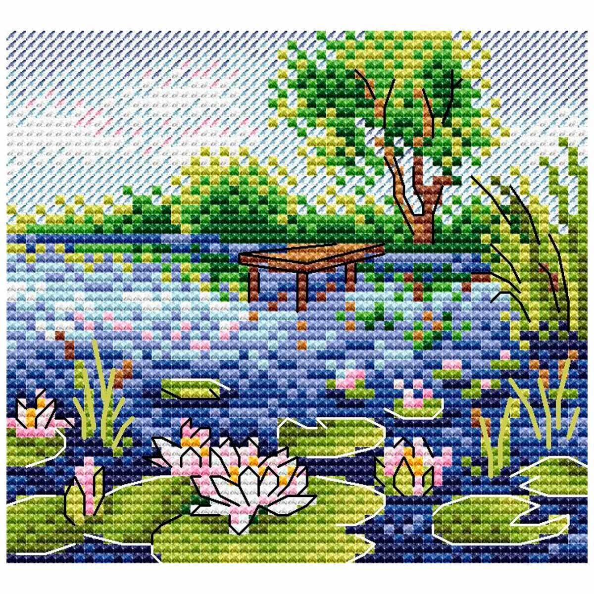 Набор для вышивания нитками МП Студия, Водяные лилии 10х11 см