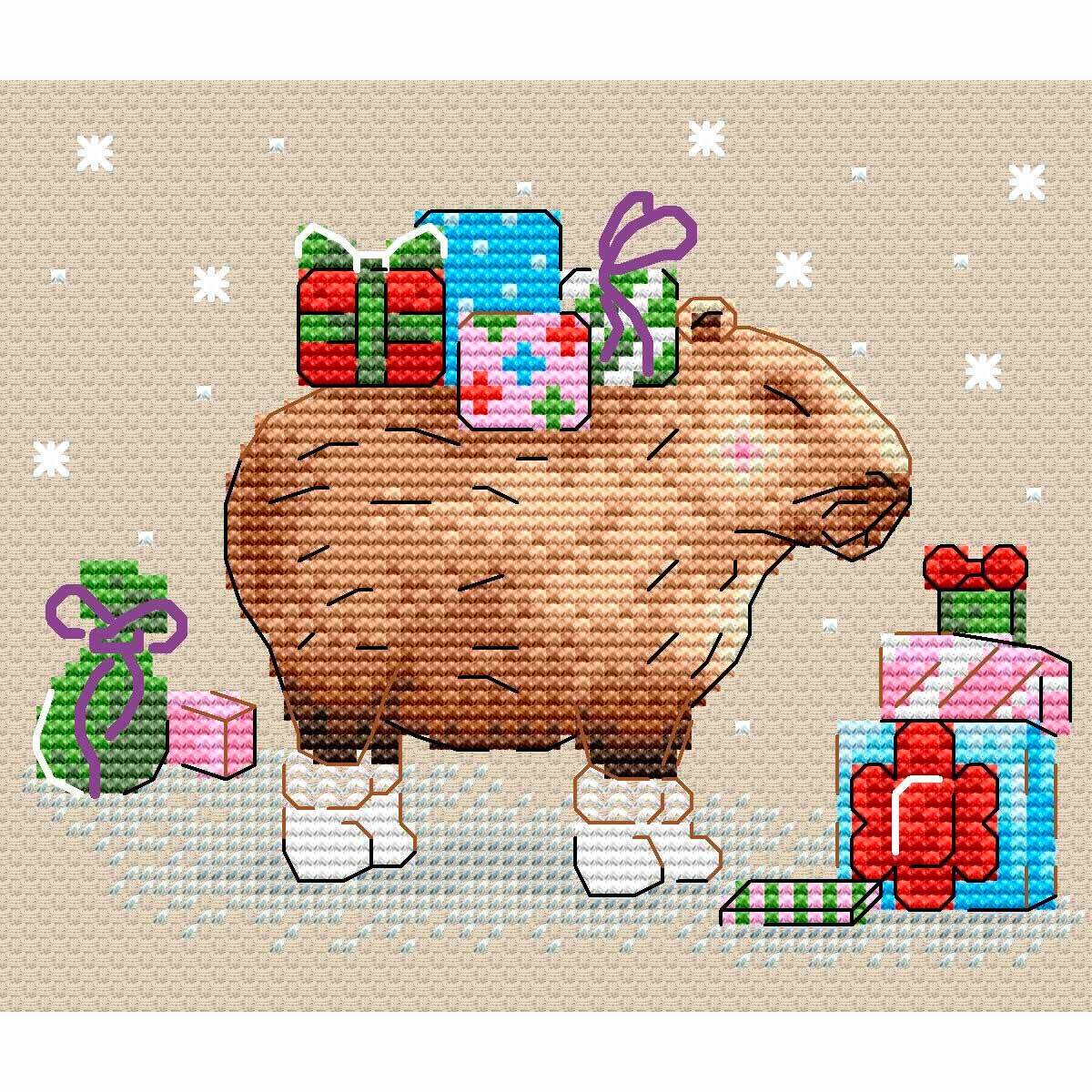 Набор для вышивания крестом МП Студия М-747, Сюрприз от капибары, 11х13 см