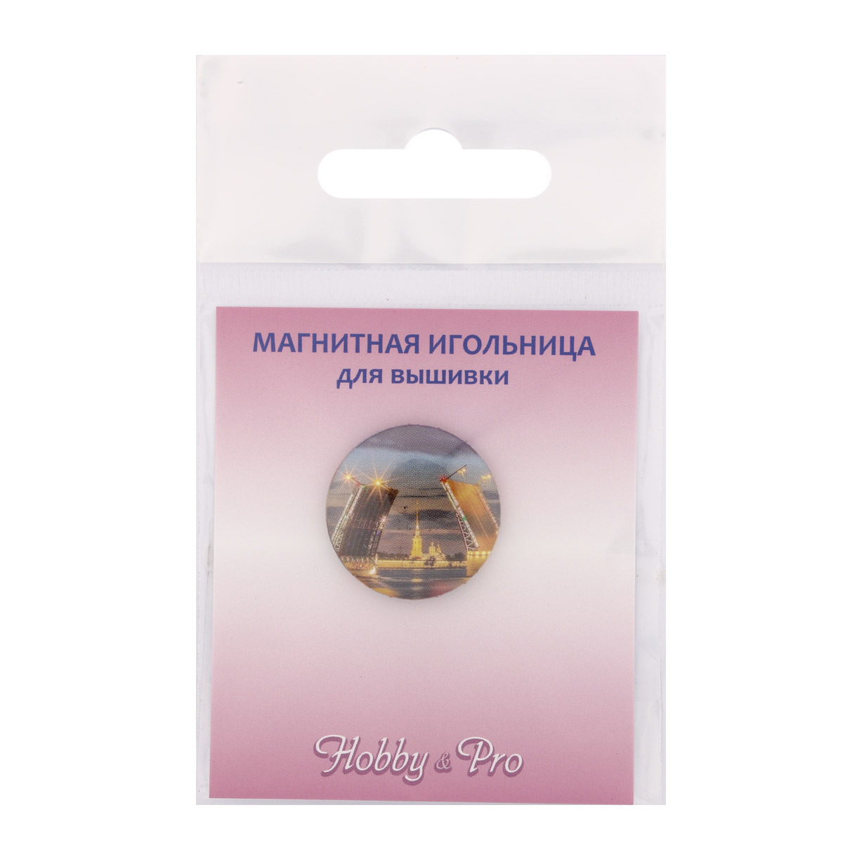 Игольница Hobby&Pro на магните с красочной миниатюрой 'Дворцовый мост' – удобная функциональная вещица и украшение вашего рабочего места. Этот аксессуар понравится всем любителям рукоделия, вышивания и шитья. Игольница позволяет быстро собирать иголки или булавки со стола, а также безопасно их хранить. Магнитная игольница Hobby&Pro может совмещать в себе функции игольницы и держателя для схемы, если вы используете металлическую подставку. Размер игольницы: диаметр 25 миллиметров, толщина 3 миллиметра.
