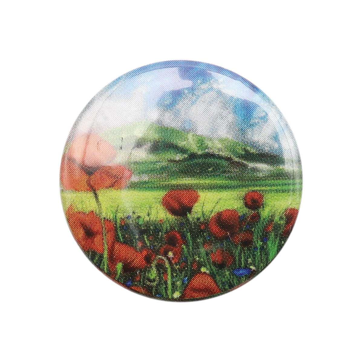 Игольница от Hobby&Pro на магните с красочной миниатюрой Маковое поле – функциональная вещица и украшение вашего рабочего места. Этот аксессуар пригодится любителям рукоделия, вышивания и шитья. Игольница поможет быстро собрать иголки или булавки со стола. Магнит будет надежно удерживать мелкие металлические предметы, чтобы вы случайно не уронили их или не потеряли. Идея: если у вас есть металлическая основа, зафиксируйте на ней бумажную схему для вышивания. Для этого используйте несколько магнитных игольниц Hobby&Pro. Размер: диаметр 25 миллиметров, толщина 3 мм.