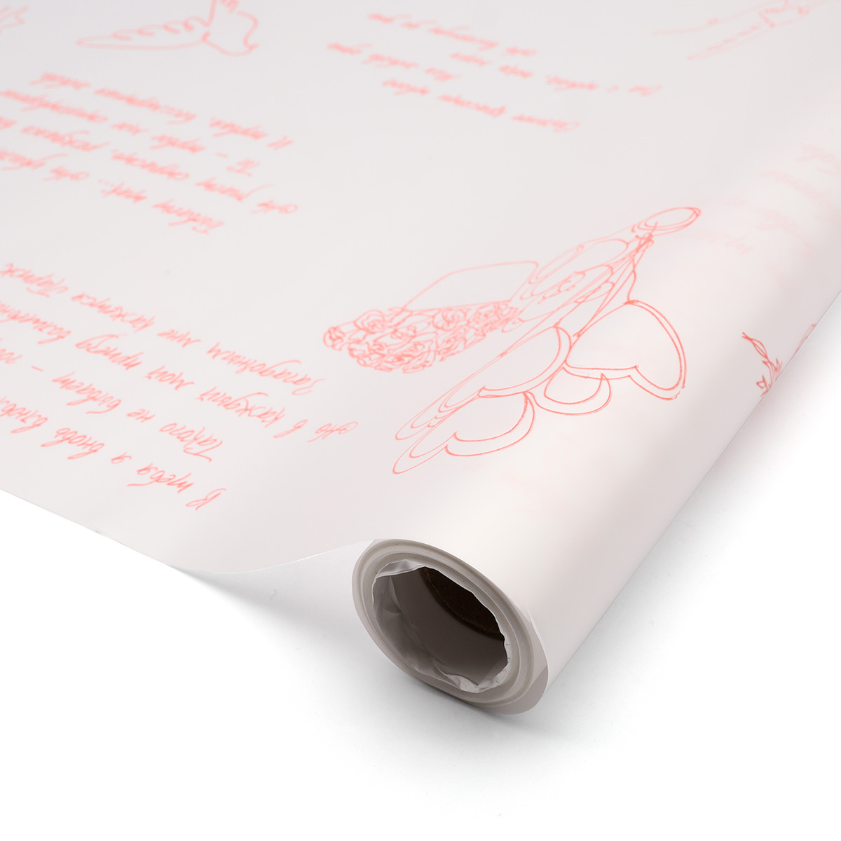 Матовая пленка 2-сторонняя на втулке Признание 50мкр, цв. перламутр белый/ красный, 60см / 9,14м, ПМР0034