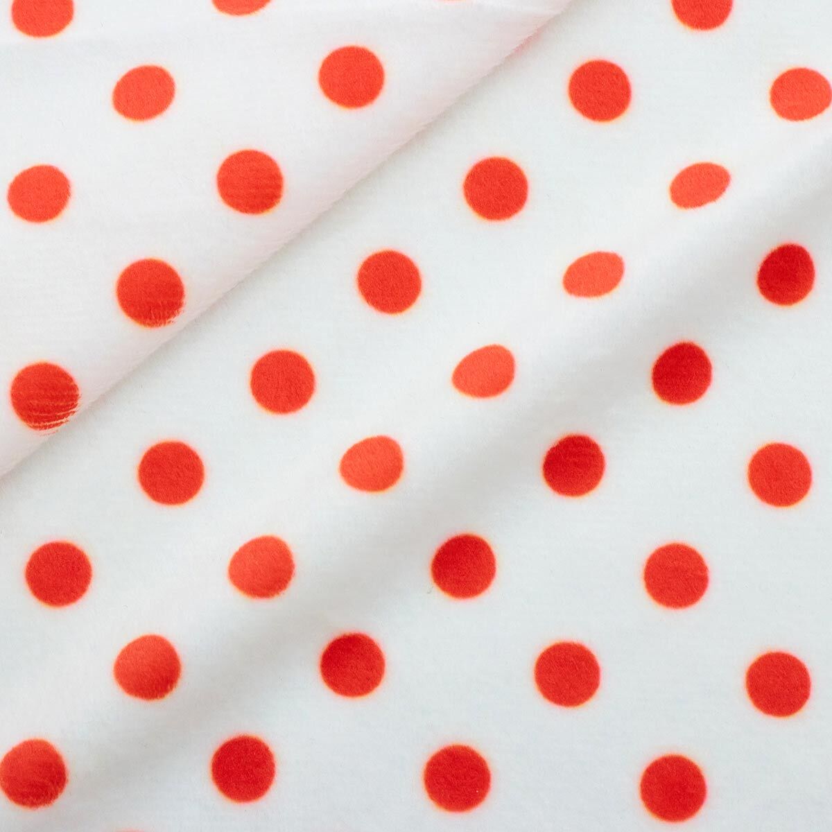 Мех коротковорсовый 1,5мм с принтом горох, 47*47см (±2см), 100% п/э (белый/красный) 29491